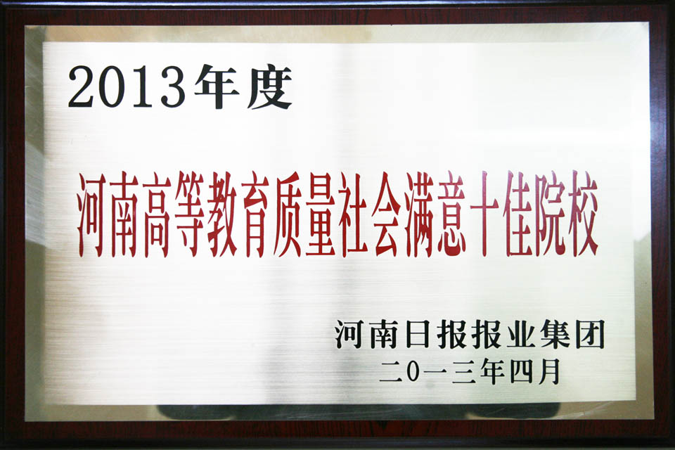 我院荣获“2013年度河南高等教育质量社会满意十佳院校”称号