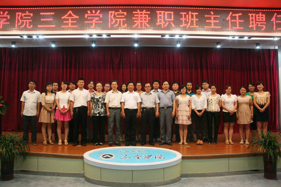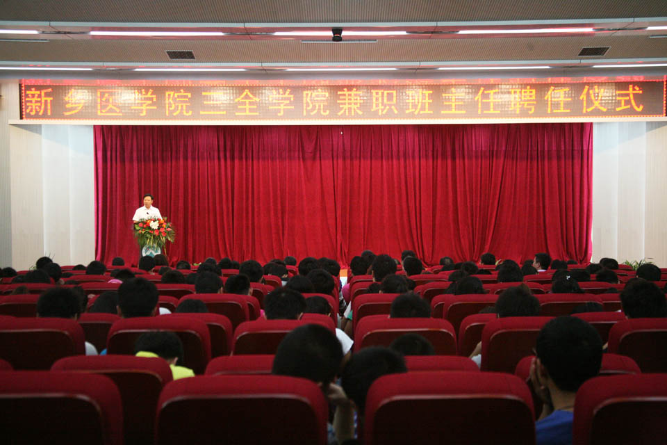 6月5日下午,新乡医学院三全学院兼职班主任聘任仪式在问学楼学术报告厅隆重举行。学院党委书记王志凯,副书记王金文,副院长王维勋、沈雁霞,各职能部门负责人、各院系党政领导,全体辅导员、教师代表和学生代表共四百余人出席会议。会议由学务部主任樊永兵主持。 本次兼职班主任选聘工作,学院高度重视、精心部署。经个人申报、院系审核、校学生工作领导小组同意,首批共聘任张文钰等20名教师担任基础医学院2012级本科临床医学专业兼职班主任。聘任仪式上,樊永兵宣读了《新乡医学院三全学院班主任工作条例》(试行),王金文宣读了《关于聘任张文钰等20名教师担任兼职班主任的决定》。随后,由王志凯、王金文、王维勋、沈雁霞为首批二十位兼职班主任颁发聘书。 兼职班主任代表张文钰在发言中表示,成为学院首批兼职班主任备感荣幸,非常感谢学院领导给予的肯定和信赖,定当以教书育人为重任,以自己的学术优势和人格魅力,向学生传递正能量,加强对学生的思想熏陶和专业引领,紧抓班风、学风、考风建设,引导学生养成良好的学习、生活习惯,同时锻炼学生的科研能力和创新能力,提高学生的专业素养。 最后,王志凯在讲话中指出,实施兼职班主任制度是我院对学生教育管理工作的加强,也是我院积极响应国家号召加强青年教师队伍建设的重要举措。兼职班主任肩负重任,在工作中应履行好自身的职责。一是要深刻认识当今社会学生管理工作的复杂性,不断提升自身政治素养,增强学生工作敏感性,做好学生思想引领;二是要深入学生群体,加强师生交流,以“父母之心,兄弟姐妹之情”对待每一位学生,用真情感染学生,做好学生良师益友;三是要努力提高自身学术水平,加强学生专业思想教育,带领学生开展学术科研活动,做好学生学业指导;四是要讲究师道尊严,规范自身言行,“公平、公正、公开”开展学生工作,做好学生人生导师。