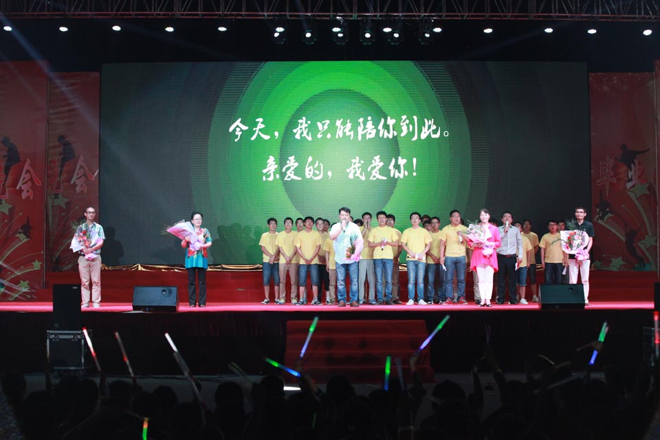 6月16日晚,“亲爱的,我爱你”——欢送2013届毕业生文艺晚会在西区篮球场隆重举行。新乡医学院党委副书记、纪委书记郑怀庆,新乡医学院副院长毛兰芝、郭志坤、原志庆、张红彦,新乡医学院各职能部门和各院系领导,三全学院学术委员会、学位委员专家委员及我院全体领导和各院系、部、职能部门领导及2013届全体毕业生观看了晚会。 整场晚会舞台恢弘,灯光绚丽, LED大屏幕播放的《印象•三全》视频回忆着2013届毕业生在校的每一个瞬间,大家共同追忆曾经的大学时光。晚会还设置了微博墙,同学们全程参与晚会的直播与互动,发表自己的感受以及对毕业祝福。 晚会在温暖的手语歌《送别》及舞蹈《歌舞青春》中正式拉开帷幕。小合唱《奔跑》《红日》让在场同学在熟悉的旋律中感受永恒的青春;动感的街舞、刚劲有力的武术表演让同学们欢呼不断。一张老照片把在场同学带到了2009年的9月17日开学那天,照片中主人公王小雨家人的突然出现,将晚会推向来第一个高潮,在主持人的带领下,全场观众在这个特殊的日子里共同对父亲说出了自已内心最真实的爱。《校园变奏曲》为我们再现了丰富多彩的大学生活;2013届毕业生们的一组歌曲串唱,唱出了自己毕业季对母校的不舍;小品《往日时光》道出了大学那难忘的室友情;《毕业照》用舞蹈的形式表现了那一张张毕业照难忘的瞬间,毕业的散场也充斥着淡淡的离别忧伤。朗诵《情书》以男女隔空对话的形式喊出了即将离开的毕业生们彼此之间最不舍得同学情,一句“亲爱的,我爱你”让全场观众落下感动的泪水。随后毕业生还为老师送上鲜花,现场老师和全体毕业生共同送给母校的《情书》引起全场共鸣。晚会在《我爱你,中国》的歌声中圆满落幕。 同学们在微博墙上发出一条条真诚的微博:“今天只能陪你到此,亲爱的,我爱你!”,“今天我们要走了,三全我爱你,无法自拔的情肠!”……展现出全体毕业生的依依不舍。 许多毕业生说,本场晚会主题鲜明,精彩呈现,成为大家难忘的记忆。