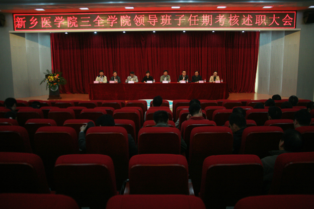 10月22日下午,我院在问学楼学术报告厅召开处级领导班子任期考核述职大会。新乡医学院党委组织部副部长王宏玲、纪委办公室副主任王鹏,我院领导王志凯、杨捷、王金文、王维勋、王彦杰、沈雁霞出席会议,全体中层管理干部及副高以上职称人员参加会议。会议由学院党委书记王志凯主持。 王宏玲首先传达了《新乡医学院2013年处级领导班子换届工作方案》文件精神,介绍了处级领导班子、干部考核主要内容、基本程序及实施办法。对于考核工作,她提出三点要求:一是要高度重视、慎重对待,要求大家从讲政治、讲党性的高度,积极而慎重参与这次考核工作;二是要实事求是、客观公正,要求大家以高度负责的精神,实事求是、客观公正,正确评价领导班子和领导干部;三是要严肃纪律,强化监督,营造风清气正的换届环境。 杨捷代表学院领导班子作述职报告。他指出,自2008年底学院新一届党政领导班子成立以来,在学校党委、行政和三全学院董事会的领导下,学院领导班子坚持以立德树人为主题,以加强内涵建设、强化办学特色为主线,以促进教学条件改善、教育质量提高、办学水平提升为重点,以战略管理、绩效考核为抓手,以党群建设为保障,深入实施“质量立校、人才强校、特色兴校、机制活校、文化育校”五大战略,各项工作取得新突破,学院整体工作实现新跨越。 最后,与会人员对学院处级领导班子及干部任期考核进行了无记名民主投票测评。