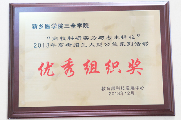 日前,教育部科技发展中心授予我院2013年度“高校科研实力与考生择校”2013年高考招生大型公益系列活动“优秀组织奖”。 “高校科研实力与考生择校”高考招生大型公益系列活动,旨在通过各高校宣传办学理念、办学方针、教学及科研能力、专业与学科建设、师资力量、校园环境等,切实为广大考生及家长正确把握高等教育形势与政策、合理填报高考志愿提供有力参考。 2013年3月至8月底,我院通过中国教育在线、教育部阳光高考、学校招生信息网等网站进行宣传,在省招办刊物上刊登招生信息,利用网络、电视、电话、现场咨询会等多种形式,开展了全方位、多渠道的招生宣传咨询工作,增进了社会各界对学校的了解,大大提升了学院知名度,提高了考生、家长和社会对我院招生工作的满意度,对于学院增加生源数量、提高生源质量起到了重要作用。