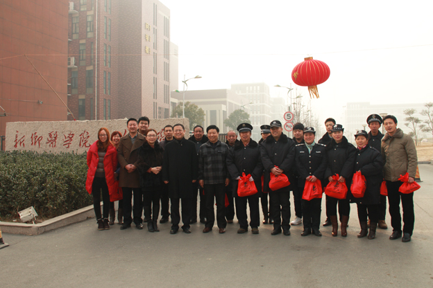 金蛇狂舞辞旧岁,骏骥扬鞭开新元。今天是农历大年三十,在马年春节即将到来之际,学院党委书记王志凯、院长杨捷、副院长沈雁霞在院长办公室主任史世锋、党委办公室主任助理吕莎的陪同下,先后来到平原校区和新乡校区慰问节日期间仍然坚守岗位的工作人员,并致以诚挚的新春祝福。 院领导与坚守岗位的职工一一握手,向各部门工作人员表示深深感谢,向兢兢业业、在平凡岗位上奉献的员工表示崇高的敬意,并为值班人员送来了慰问品,表达了新年的问候,祝愿他们在新的一年里工作顺利、身体健康、阖家幸福。 学院的关怀使节日期间坚守岗位的员工受到极大鼓舞,大家纷纷表示,一定会坚守岗位,尽职尽责,确保春节期间校园安全与稳定,共祝学院未来事业更加辉煌!