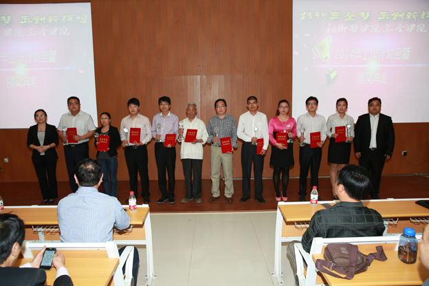 5月8日下午,我院在平原校区第一教学楼D2大教室隆重举行以“践行三全梦  再创新辉煌”为主题的2014年度工作计划会暨颁奖典礼。院领导王志凯、杨捷、王金文、王洪兴、张钢、沈雁霞出席。典礼由院长办公室主任史世锋主持。 一段以“展望过去”为主题的视频拉开了会议的帷幕。在观看了感人至深的2013年度十佳人物微电影后,颁奖典礼正式开始。王炜烨、金靖芝、李富政等十位同志,他们在平凡的岗位上用不平凡的精神,立足岗位、扎实苦干、播洒智慧,最后收获了芬芳,荣获“2013年度十佳人物”;党务办公室和管理学院追求卓越,不断奋斗,荣获 2013年度“进步奖”;团委、药学院、生命科学技术学院,工作以创新为动力,强调新思维、新举措、新模式被评为2013年度“创新项目奖”;党务办公室、就业指导服务中心、教育技术中心、基础医学院、护理学院,以科学的管理、精密的分工、团结协作和求真务实的精神,以及丰硕的工作成果,获得“目标完成先进单位”奖;樊永兵、李卫忠等26人,在新生军训期间,为了学生,他们用不屈的斗志打赢了一场艰苦的战斗,谱写了一曲英雄的赞歌,基建部王世昌,舍小家为大家,甘愿牺牲自我、服务学校、无怨无悔,他们荣获“董事长特别奖”。 颁奖典礼结束后,杨捷做重要讲话,他首先代表学院向获奖的单位和个人表示热烈的祝贺!对执着耕耘在教学一线的老师们、拼搏奋进在管理、服务岗位上的同志们,表示最衷心的感谢!他指出过去的一年是学院办学十年里程碑的一年,也是学院发展转折的重要一年。在这一年里,我院全体教职员工同心同力,初步建成了“一校两区”的办学新格局,进一步完善了科学有效的管理体系,增强了我院的核心竞争力,为我院今后蓬勃发展的奠定了扎实的物质基础和组织基础。他说,学院继续按照河南省教育厅“做好独立学院验收工作”重要指示、《迎评建设阶段工作实施方案》等,坚持“以评促建、以评促改、以评促管、评建结合、重在建设”的指导方针,结合《独立学院达标要求》,重点加强校园面积、教学行政用房、师资队伍、教学科研仪器、图书等基本办学条件的建设,遵循“不缺”“不滥”两个原则,科学谋划,统筹安排,规范管理,务实工作,确保“注重过程,重在建设,高质量通过”目标的实现。 接着,杨捷从评建工作、教育教学水平、师资队伍建设、办学治校能力、勤服务水平、育人体系党团群建设等七个方面做了重要部属。评建工作要遵循“不缺”“不滥”两个原则,确保“注重过程,重在建设,高质量通过”目标的实现。针对教育教学工作,他认为这不仅是学院的核心工作,也是我院评建工作的重要组成部分,只有做好教育教学工作,才能实现规模、结构、质量、效益的协调发展,从根本上实现我院的战略转型。对于以学生为主体的教学管理体系,则要全方位、多角度培育适应社会需要、综合素质和专业素质并重的人才。他强调,2014年我们要深入学习宣传贯彻党的十八大、十八届三中全会和习近平总书记系列讲话精神;深化中国特色社会主义宣传教育;落实学院《政治理论学习制度》,加强政治理论的检查监督,确保学习效果。            |