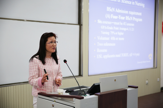 5月16日下午,由我院团委主办,护理学院承办的牧野大讲坛之“Nurses and Nursing education in Canada  For Safer Nuring Care”在平原校区第一教学楼B301教室举行,本次讲座特邀加拿大安大略省注册护士、护理管理硕士郭璠老师担任主讲。我院党委副书记张钢出席。