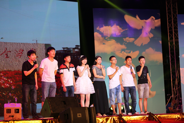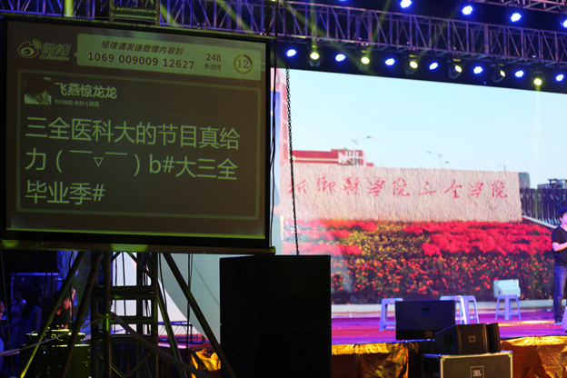 青春岁月,大学难忘。这一刻,爱吧! 晚会开始前,LED大屏幕播放了2014届毕业生在校的每一个记忆,大家共同回味曾经的大学时光。晚会还设置了微博墙,同学们全程参与晚会的直播与互动,发表自己的感受以及对毕业的祝福。 整场晚会分四个篇章。第一篇章为37.8度初识,据说37.8度是一见钟情的温度,有青涩有张狂。小合唱《We Will Rock You》、《Nobody》一出场便High动了所有同学的心情。紧接着一场魔术表演《爱情玫瑰》将同学们带到了另一个温度;第二篇章为39.2度 磨练,火一样的青春岁月里表现同学们的坚持。舞蹈《颂春》、街舞《爱的旋律》让同学们欢呼不断,小品《天使与魔鬼》将晚会推向第一个高潮。第三篇章是38.5度 感恩,感恩相遇感恩相知。一曲《时间都去哪了》唱软了所有人的心灵。曲毕,主持人采访了曹瑾玲、李东亮两位老师, “因生而学,因学而生”,“展翅高飞,前程似锦” 是两位老师对毕业生最后的嘱托和祝福。各毕业班辅导员献唱《有你有我》,台上台下热情四溢。晚会进行到第四篇章:38.5度飞翔,又回到了原始的温度。各院系毕业生倾情联唱,唱出了所有人的希冀,唱出了现场观众的眼泪。随后,国旗班展示及医学生誓词庄严肃穆,全体毕业生在国旗面前郑重宣誓,气势激昂。 晚会在《飞翔在远方》的歌声中圆满落幕。 晚会同时发起微博话题#大三全毕业季#,微博不断刷新,小小的微博墙铺满了同学们离别的情绪:“兄弟、姐妹,再见!”,“全全,你在我心中是最美!”“大三全,千姿百态!”…… 许多毕业生表示,这场晚会感动了他们,惊艳了他们,将成为大学校园最美的记忆之一