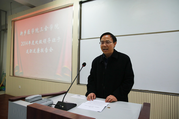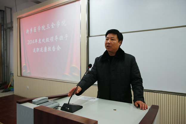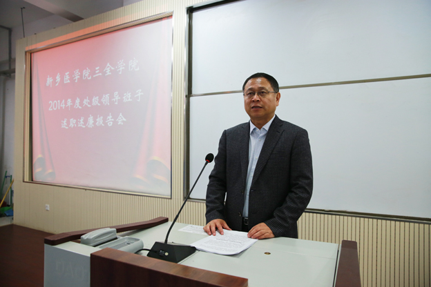 1月13日下午,我院在平原校区第一教学楼B101教室召开2014年度处级领导班子述职述廉报告会。新乡医学院党委学生工作部部长、学生处处长魏文君,党委保卫部部长、保卫处处长万同玉,学院领导王志凯、杨捷、王金文、王彦杰、王洪兴、张钢、沈雁霞出席会议,全体中层管理干部、教师代表参加会议。会议由学院党委书记王志凯主持。 魏文君首先介绍了本年度处级领导班子考核的重要意义、主要内容、基本程序和工作纪律。他指出,开展年度考核是科学评价领导班子和领导干部、加强干部监督与管理的重要措施,也是不断总结经验、促进各项工作更好更快发展的需要。他强调,完成教育实践活动整改落实任务将作为本次考核工作主要内容。对于测评工作,他提出两点要求:一是要严肃认真、慎重对待。要求大家从讲政治、讲党性的高度,积极而慎重参与这次考核工作;二是要实事求是、客观公正。要求大家以高度负责的精神,实事求是、客观公正,正确评价领导班子和领导干部。 杨捷代表学院领导班子作述职述廉报告。从五个方面概述了学院在 2014年所取得的丰硕成果,并总结了存在的问题和不足。他指出,2014年,学院实施质量、品牌、经营三大战略,以党的群众路线教育实践活动为助力,以转型发展为目标,全面深化教育教学改革改革,同心同德,群策群力,圆满完成了董事会和新乡医学院部署的各项任务。一年来,学院明确了向应用技术型大学转型发展的战略,积极探索转型发展道路,成功加入应用技术大学(学院)联盟;加大教学改革,提高教育质量,全面推动人才培养模式改革,构建应用型人才培养体系;创新学生管理体制,实施学工体系改革,构建以人为本、高效服务型的学生工作体系,促进学生全面发展;加强基础设施建设,完善办学条件,增强办学效益,提高保障能力;围绕学院改革发展大局,全面加强作风建设和反腐倡廉建设,促进学院事业持续健康发展。 最后,与会人员对2014年处级领导班子年度考核进行了无记名民主投票测评。