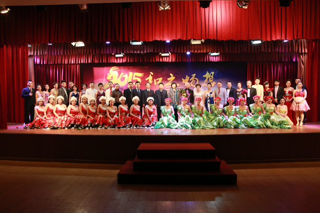 1月29日下午,我院“和之畅想”2015新春联谊会在新乡校区馨飨苑文化活动中心隆重举行,全体教职工济济一堂,共迎新春。 联谊会由三个篇章组成:和衷共济——共开拓,时和年丰——共青春,惠风和畅——共追逐。 首先,联谊会为工会先进集体和个人十年、五年年资奖的人员颁发奖杯和鲜花。 随后,杨捷致新年贺词。杨捷代表学院董事会、学院领导,向全体教职工及其家人表达衷心感谢和新春祝福。 联谊会节目由学院各单位选送。现代舞《青春气息》格调热情欢快,爵士舞《吉娃娃》旋律跌宕起伏,歌曲联唱《相亲相爱一家人》深情脉脉,走秀《辣妈萌宝秀》活力四射,歌曲《路一直都在》优美深沉,《时代风采》激情澎湃,舞蹈《唐古拉风》柔美动人;情景舞蹈剧《三全梦、奋进情》记录了职工真实的一天;朗诵《三全是一棵树》与《爱的告白》充分表达了全体师生对学院的热爱与祝福。节目精彩纷呈,观众掌声和欢呼声不断。联谊会在歌曲《春暖花开》中圆满结束。 最后,院领导等出席嘉宾与全体演职人员合影留念。