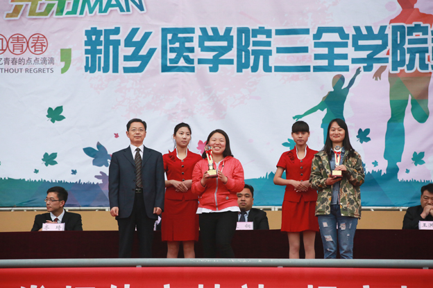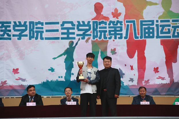 5月10日下午五点,我院第八届运动会在平原校区圆满落幕。在本届运动会中,运动员们取得了优异成绩,共打破了2项学院记录。 学院领导王金文、王洪兴、张钢出席闭幕式。体育部主任杨晓林,学生事务发展部主任助理、大学生就业创业指导服务中心主任张东,工会副主席韩丽,体育部副主任齐琦参加。 首先,齐琦宣布各项比赛成绩。羲和书院代表队共获得学生组男子团体总分第一、学生组女子团体总分第一及学生组男女团体总分第一,精诚书院代表队获得学生组男子团体总分第二及学生组男女团体总分第二,仁智书院代表队获得学生组女子团体总分第二及体育道德风尚奖。院领导和部门主管为获奖代表队颁奖。 随后,王洪兴致闭幕词。他向在本次运动会上辛勤工作的裁判员和全体工作人员表示衷心的感谢,向勇于参与、顽强拼搏的全体参赛队员表示崇高的敬意,向获得各项荣誉和取得优异成绩的运动员们表示最热烈的祝贺。他高度评价了选手们的奋勇拼搏、裁判员的客观公正以及工作人员尽心尽职的精神。他希望全体师生树立终身参加体育锻炼的体育意识,保持健康的体魄和向上的灵魂,在未来的生活中高歌猛进、永不言弃,共同创造人生道路的新辉煌,谱写学院发展的新篇章。 最后,王金文宣布新乡医学院三全学院第八届运动会闭幕。 据悉,本届运动会共设置3个大项,37个小项赛事,6人次打破了2项运动会记录,12个代表队获得比赛团体奖,1个学生代表队获得体育道德风尚奖。这一项项成绩的取得是同学们辛苦训练、不断进取的成果,也是全体师生团结一致、共创奇迹的见证,更是学院“全面实施素质教育”办学理念的最好诠释。