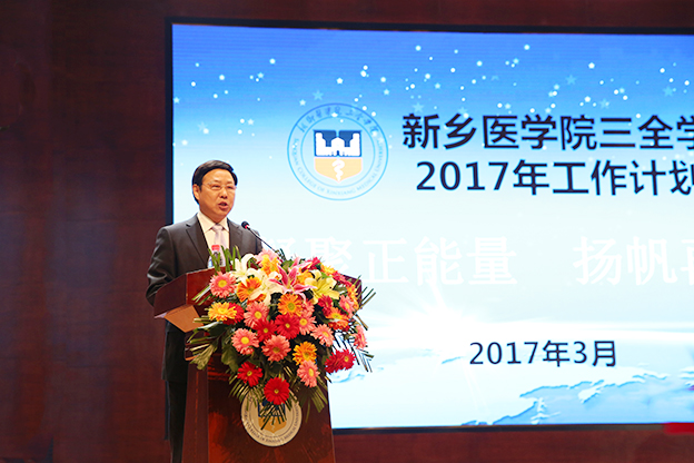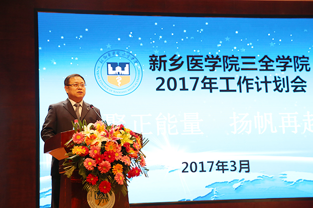3月10日,我院2017年工作计划会在闻德礼堂隆重举行。我院院长杨捷、党委书记王志凯、党委副书记王金文、副院长王彦杰、党委副书记张钢、副院长沈雁霞、后勤总监马波、财务总监王延生出席会议。会议由院长办公室主任史世锋主持。 会议首先表彰了“2016年度十佳人物”:郭立喜、张紫阳、翟莎莎、郝诗亮、李剑、刘璐、李薇、卢明臣、杨杰、刘巨源;“目标完成先进单位”:人力资源部、校园网络管理中心、党务办公室、生命科学技术学院、思想政治理论课教学部、德馨书院;“进步奖”:人力资源部和药学院;“创新项目奖”:教务部、护理学院、羲和书院;“董事长特别奖”:拼命“三”郎---防汛抢险团队、新媒体“尔玉”---王玺秀。院领导依次为获奖单位和个人颁奖。 随后,王志凯作学院2017年工作部署。他回顾了学院2016年的工作,过去的一年是我们实现“十三五”良好开局的一年,全体三全人用智慧、汗水斩获了一个个激动人心、催人奋进的骄人成绩,学院的转型发展初见成效,教育教学改革扎实推进,学工体系和“双院制”育人模式日臻完善,招生就业再创新高,基础条件建设逐渐完备,科研创新实现国家级项目立项零的突破,学院的知名度、美誉度持续提升,并荣获“全省先进社会组织”、“河南省民办教育行业知名品牌”等荣誉称号,我们的发展成果得到了社会各界的一致认可。 王志凯指出, 2017年是学院深入实施“十三五”规划、加快转型发展的攻坚之年。学院工作的总体要求是:全面贯彻落实党的十八大和十八届三中、四中、五中、六中全会精神,牢固树立和贯彻落实创新、协调、绿色、开放、共享的发展理念,主动适应经济发展新常态,落实立德树人的根本任务,以结构性改革为主线,以服务地方经济发展和满足人才需求为导向,以改革创新为动力,以党的建设为保障,全面实施“双院制”育人模式下的应用型人才培养,深化产教融合、校企合作,增强学生的就业创业能力,提高教师的教学科研水平,凝练文化底蕴,凸显办学特色,建设安全、绿色、集约的智慧型校园,勠力同心、群策群力,力争实现学院转型发展的新飞跃。 王志凯从“完善顶层设计,深化体制机制改革;坚持立德树人,提升教育教学质量;优化学工体系,激发人才培养活力;强化师资保障,提高人才队伍建设水平;改善办学条件,夯实转型发展根基;加强组织保障,凝聚学院发展向心力”等六个方面对学院2017年工作做了整体部署。王志凯强调,“安不忘危,盛必虑衰”,面临错综复杂的教育发展形势,我们仍然要保持忧患意识和危机意识,斗志昂扬,激情饱满,在高等学校转型的浪潮中一马当先、力拔头筹,为把学院建设成为地方性、高水平、有特色的新型高等医学院校而努力奋斗! 接着,杨捷作总结讲话。他说,2017年,为了继续贯彻“建设地方性、高水平、特色鲜明的新型高等医学院校”的总目标,我们的中期战略目标和路径是“转型发展、内涵发展、特色发展”,这也是当前和今后一个时期内学院的发展战略。“三个发展”成效如何,将直接关系到学院的生死存亡。随后,他从“‘三个发展’是实现我院事业发展新跨越的必然选择、找准推进‘三个发展’的基本思路和着力点”两个方面作了详细阐述。 他强调,“三个发展”工作意义重大、任务艰巨。不但需要我们解放思想,更需要我们凝聚共识,在观念上适应、认识上到位、方法上对路、工作上得力,坚定不移推进转型发展、内涵发展、特色发展,坚定走应用型发展之路,才能为我院未来发展赢得更为广阔的空间。只要全院上下齐心协力,对外适应发展新形势,对内直面存在的问题,大胆改革,敢于创新,勇于担当,切实解决好发展中的难题,我们一定能够在激烈的高等教育竞争中立于不败之地。 “士不可以不弘毅,任重而道远”,在三全精神的鼓舞下,全体三全人必将励精图治、奋勇争先,共同开创学院更加辉煌灿烂的明天! 最后,会议在大家雷鸣般的掌声中胜利落幕。