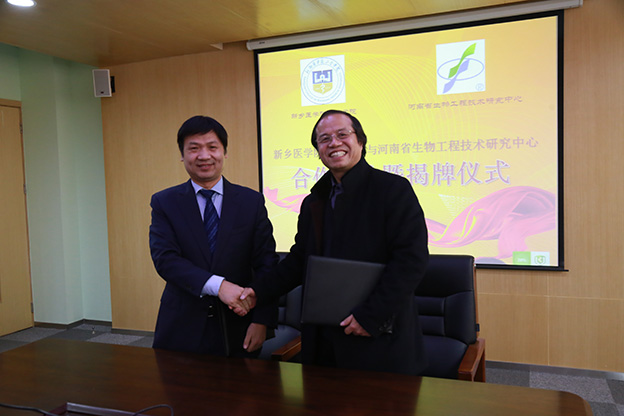 12月23日,我院与河南省生物工程技术研究中心合作签约暨揭牌仪式在我院平原校区行政楼第三会议室举行。河南省生物工程技术研究中心王云龙教授、业务副主任李玉林,我院党委书记王志凯、副院长王彦杰、教务长杜华贞出席,生命科学技术学院、教务部、科研部相关部门负责人共同参加了此次签约仪式,仪式由院长办公室主任史世锋主持。 王志凯致欢迎词,他对各位专家和嘉宾的到来表示衷心的感谢,并表示河南省生物工程技术研究中心新乡医学院三全学院研究基地的建立,标志着我院在进一步推进产学研合作、提升服务河南地方经济发展的能力和水平迈出了新的步伐。此次合作,双方旨在科学研究、学科建设和人才培养等诸多方面进行深度合作,共同搭建生命科学和医学科学研究平台。希望双方以此次合作为契机,积极投身基地建设,在合作中创新,在共赢中发展。 王云龙对参加此次仪式的各位领导表示感谢。他谈到,河南省生物工程技术研究中心是河南省自主创新体系建设的重要组成部分。生物中心通过研究开发、成果转化、教育培训等方式,为推进生物科技和产业的发展发挥引导辐射带动作用。中心取得国家二类以上新药证书5项、国家发明专利13项、省级科技成果鉴定11项。中心先后被授予“全国自律与诚信建设先进单位”、“河南省科技创新十佳单位”等荣誉称号。此次合作双方将明晰目标、明确规划,在技术攻关、产品研发和申报国家及省部级项目等方面进行更加紧密的合作。 生命科学技术学院副院长卢龙斗表示,此次合作标志着我院科技创新能力、医药研发能力、学科建设等诸多方面迈上了新的台阶。双方本着发挥优势、全面合作、共同发展的指导思想,共同构建科学研究、科技创新和产学研紧密结合的平台,并期待双方在技术攻关、项目开发、医疗器械研发等方面进行更深层次的合作。 在热烈掌声中,双方领导签订了合作协议并共同为“河南省生物工程技术研究中心新乡医学院三全学院研究基地”揭牌并合影留念。 此次合作,标志着我院在优势学科建设、高层次项目申报、科技创新能力、科技研发能力等诸多方面有了新的突破。合作协议的签订必将进一步促进我院科技研发、技术创新和人才培养,带动我院各项工作迈上新高度。