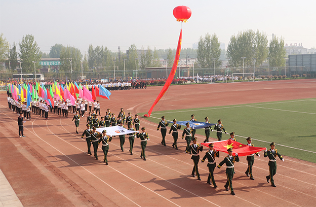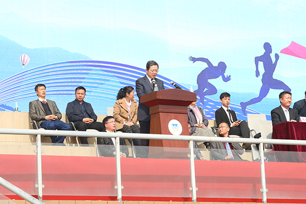 春暖花开,阳光明媚。4月13日上午,我院第十二届运动会在平原校区风雨操场隆重开幕。我院党委书记王志凯,党委副书记王金文、张钢,副院长沈雁霞,教务长杜华贞,后勤总监马波,学务长邱永建等出席运动会。学院各院、系(部),书院和职能部门共3000余名师生共同参加了开幕式。 伴随着《运动员进行曲》的乐声,国旗队、各书院、院系以及教职工代表队迈着整齐有力的步伐依次入场。各书院的方阵队列整齐,气势如虹,展现了师生良好的精神风貌。 在庄严肃穆的国歌声中,本届运动会拉开序幕。 本届运动会组委会主任委员王金文为开幕式致辞。他代表运动会组委会,向精心筹备本届运动会的全体师生表示衷心地感谢,向刻苦训练、积极参赛的运动员致以良好的祝愿,向全体教练员、裁判员致以亲切的问候。王金文说,运动精神是一个民族生命力旺盛的标志,也是社会文明发展进步的体现。而一个合格的学生,不仅是态度端正、基础扎实、成绩优异的专才,更应是在各个领域里挑战自我、攻坚克难、勇攀高峰的通才。秉承“全面实施素质教育、全面适应社会需要、全面培育医学英才”的办学理念,我院已举办十二届运动会,体育运动会已经成为三全学院校园生活的重要组成部分,成为我院全面贯彻党的教育方针、落实素质教育的重要体现。他预祝全体运动员取得优异的成绩。 随后,参赛运动员代表及裁判员代表庄严宣誓。 王志凯宣布新乡医学院三全学院第十二届运动会开幕。 随后举行各书院团体操表演,各项比赛依次进行。据悉,本届运动会共设置两个大项,37个小项赛事,运动会将持续两天。
