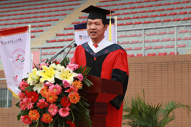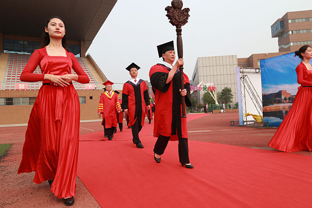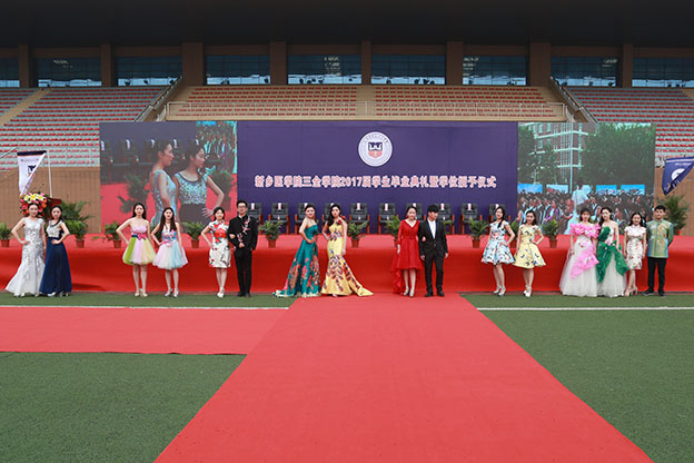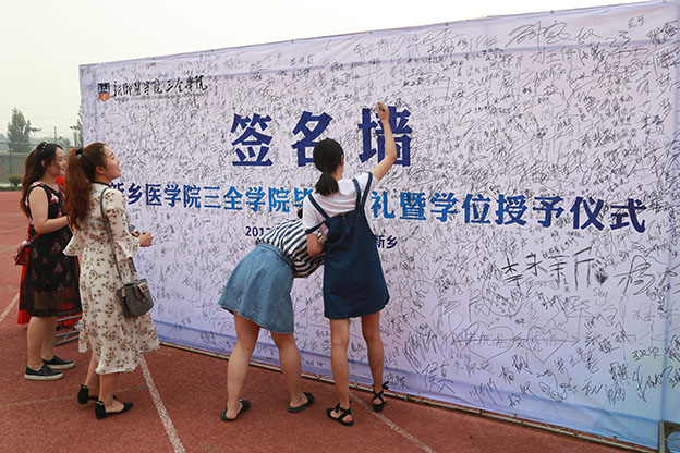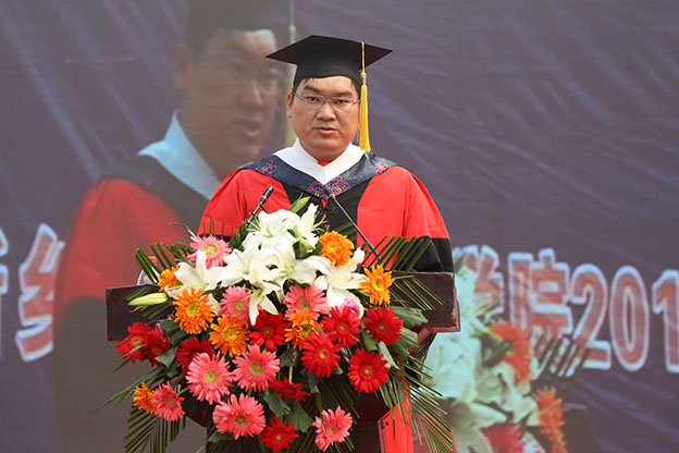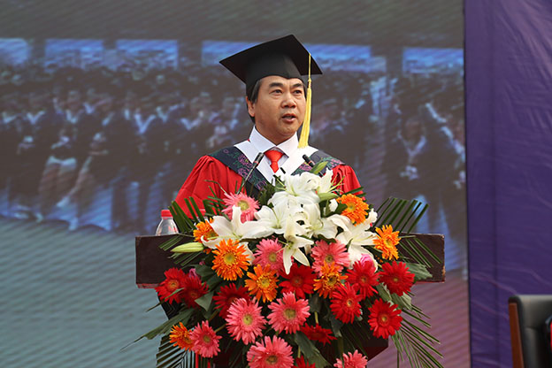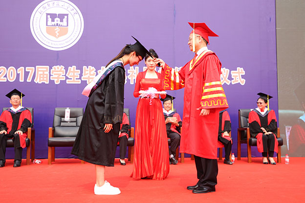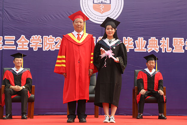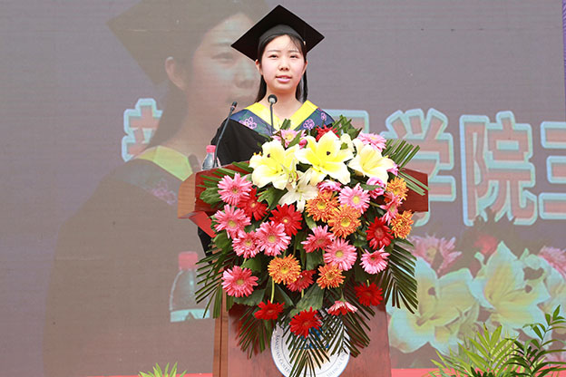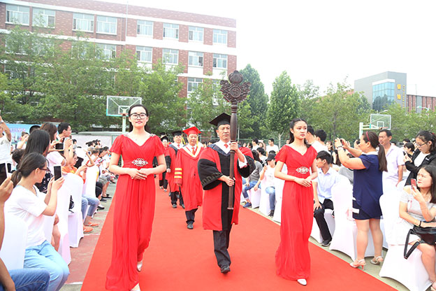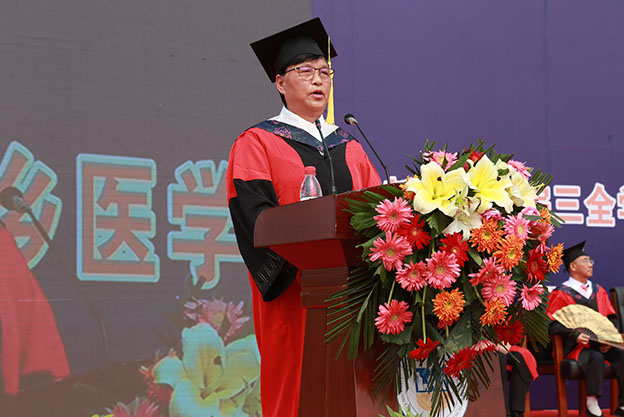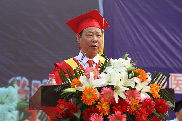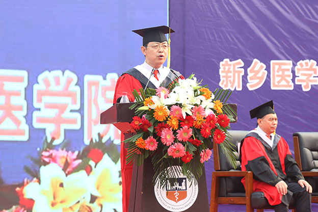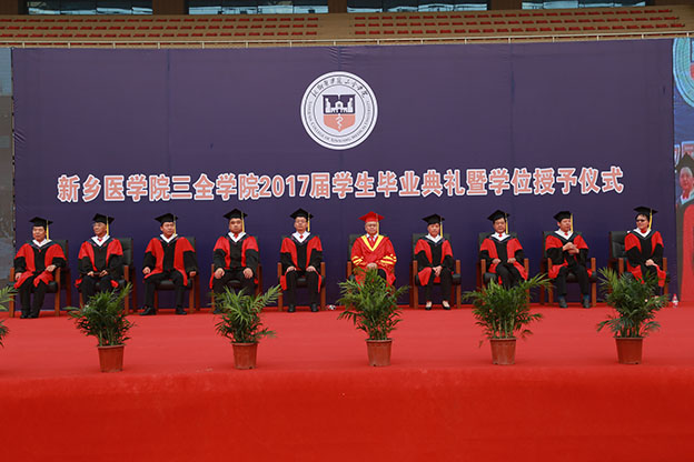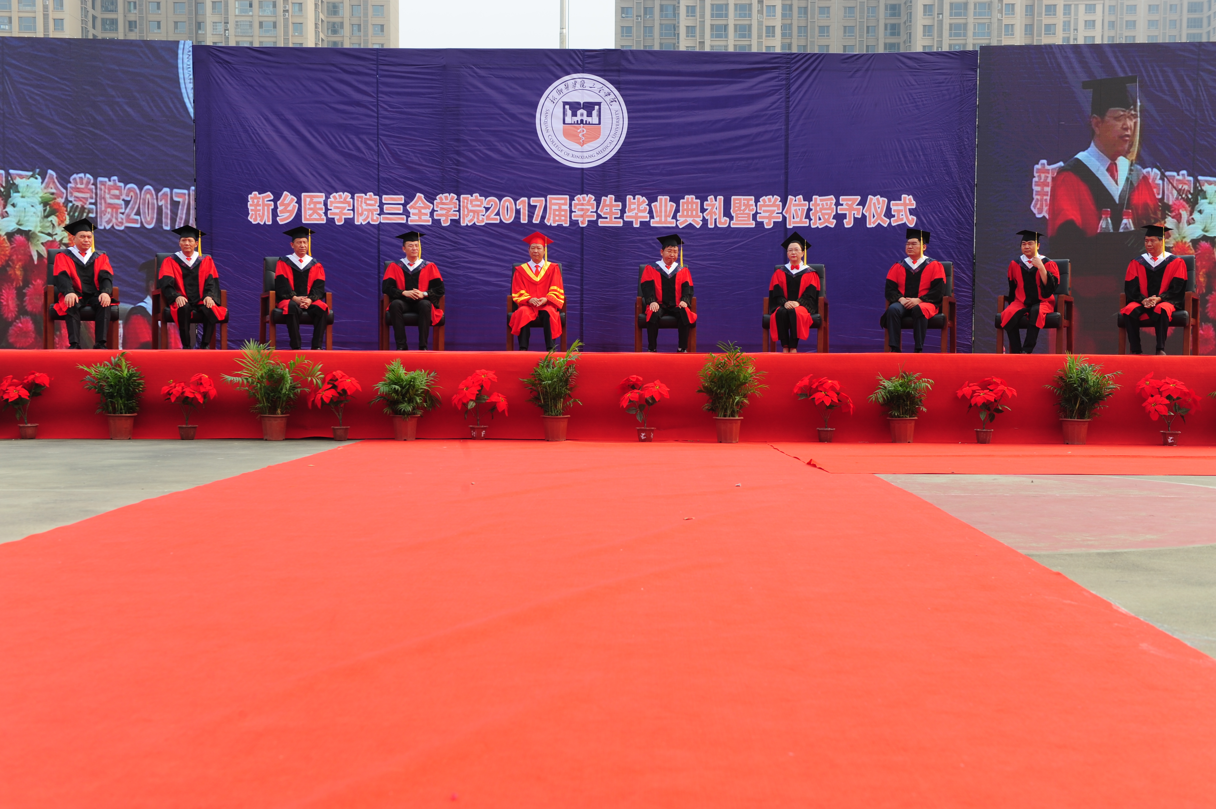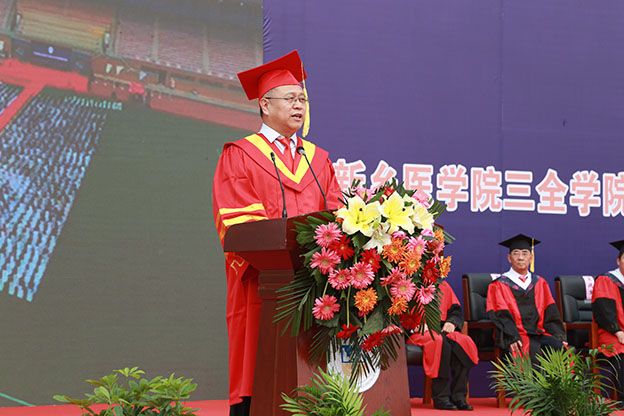 6月14日上午,新乡医学院三全学院2017届学生毕业典礼暨学位授予仪式在平原校区体育场和新乡校区篮球场同步举行。新乡医学院副校长陈清江教授,新乡医学院三全学院全体院领导,全过程教学基地及产教融合合作单位的领导,毕业生家长代表,各教学院(系、部)、各书院、各职能部门、各党总支负责人,全体毕业班辅导员及2017届学生参加。典礼由党委副书记王金文、副院长王彦杰分别在两校区主持。 为确保两校区共4202名毕业生充分参与典礼,学院利用互联网技术,大胆采用“两地直播”的全新形式,首次将场地分设于新乡校区和平原校区,同步进行、实时互动、高度融合、同频共鸣,成功为全校师生筹备了一场饱含深情、亮点连连的赠别盛宴。 典礼现场,气氛庄重而又爱意浓浓。长长的照片墙记录着同学们点点滴滴的大学时光,4000多张毕业生组成的笑脸预示着光明的前程,毕业生们着盛装、走红毯、纷纷在“留言墙”上踊跃签字留念,成为了典礼现场一道道亮丽的风景线。 典礼开场前,威严、崇高的权杖缓缓出现:荷花包裹着珍珠,象征学术权威的高尚和纯洁;蛇杖与院徽呼应,象征神奇的医术、中立的医德与医学的权威;祥云环绕,象征学院蒸蒸日上的教育事业。在庄严的音乐声中,杜华贞教授和卢龙斗教授分别手持权杖引领两校区领导及学位委员会成员入场,展现了学术至上、人文至上的心灵呼唤与三全人勇于创新、追求卓越的精神风貌。随后,进行了庄严的升国旗仪式。 首先,杨捷院长在平原校区致辞。他言辞恳切、饱含深情,代表全体教职工向2017届学生表达祝贺与不舍,在毕业之际,他希望同学们做好“三道题”:“学会做判断题”—世间万物都有真假、正误,且在瞬息万变,做出正确的判断与取舍,需要不断地去鉴别、探索和积累。曲高虽然和寡,曲径却能通幽。他说:“不管走上哪条路,通往成功的道路上必定孤独且荆棘丛生,唯有‘闳约深美’,方能成为人生赢者”。“学会做选择题”—“判断正误是初级筛选、本能反应,但在多个选项中做出最终抉择,却是一种能力、一种修炼”。现在的时代,是一个追求便捷与高效的时代,诱惑越多,选择就越困难。他希望大家不要被APP制约、被wifi捆绑、被微博头条和独家爆料牢牢抓住视线,更不要把社交圈缩小到只有QQ空间和朋友圈。正因为时间短暂、精力有限,才更要关注有价值、有内涵、更深远、更博大的事物。“学会做简答题”—他希望同学们在判断和选择的基础上,练就“天地与我并生,万物与我为一”的胸怀,能化大为小、化繁为简、化难为易,领悟生活的要义,做出精准的回应,同时,保持内心的理性与自由,做一个质朴而简单的人。他说:“我们面对的世界是复杂的,既有黑暗、也有光明。当感到黑暗的时候,要努力点亮蜡烛。即便不能照亮别人、照亮周围、照亮世界,也必定能照亮内心,让自己看清前行的路,避免误入歧途。”他希望大家在这个复杂而欲望丛生的世界里,能够坚守初心。 王志凯书记在新乡校区作毕业寄语。他说,在三全人眼里,三全学子永远是独一无二的限量版,母校和母亲一样,从不会以世俗的标准来衡量孩子。在临别之际,他跟同学一起分享了三句话:“要保持与他人的良好关系”——不要在合照中只把自己P成“白富美”,不要让友谊的小船“说翻就翻”,更不要成为一个精致的利己主义者,不管以后为学、为医、为商或是为官,都要努力创造一个和谐、健康、轻松的生活圈子,让紧张的生活变得怡然自得。“要保持与大学的脐带关系”—他说:“一帆风顺时,母校会为你们欢呼呐喊;遇到困难和挫折时,母校将是你们永远的精神家园;踌躇满志地准备创业却囊中羞涩时,创业孵化园或许就是你梦开始的地方。希望你们走出校门后,能经常@母校,能永远记得,不论今后遇到怎样的挑战,你的身后都站着数万三全校友,站着三全学院”。“要保持与国家的子母关系”—他希望同学们不盲目追逐“热门”、“排行”,不过分关注“留言”、“点赞”,不热衷各式各样的“表情包”,更不做“低头刷屏族”,要学会安抚心里那个时常叫苦、喊累的“宝宝”,要学会独立,真正长大,正式承担起一份中国公民的责任。最后,他祝愿每一位17届毕业生,都能成为二、三十年后国家和人类的优秀领导者,都能在90岁后依然保持一颗不老的灵魂。 郭明好教授—大家公认的“好叔”作为教师代表发言。他声情并茂、幽默风趣,引得现场师生欢笑连连。他从“做个让人放心的人、安静的做个医生、善待自己”三个角度引导同学们思考“你到底是谁?内涵与个性如何?你这块玉应该怎样雕琢才能发挥到极致?”这几个问题,进而明白“如何安静地做好自己”。他说:“不要常把‘我保证’、‘你放心’之类的话挂在嘴上,不要为了让别人高兴或重视就以别人的标准来定制自己的言行。应该知深浅、明尊卑、懂高低、识轻重、讲规矩、守道义、敢担当,为他人着想就是为自己铺路”。他认为行医是一种艺术而非交易,是一种使命而非行业,不要试图利用职业便利追求世俗目标,要具备优秀医生的一切特质,坚持工匠精神,将自己的专业一步一步做到极致。他勉励同学们做一个“敢于追梦、善于圆梦”的人。他表示,生活之所以累,一小半源于生存,一大半源于攀比。因此,不要在社会中大声喧哗,不要动不动就要改变这个世界,不要