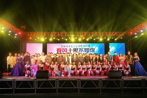 9月27日晚,“春风十里不如你”2017级迎新晚会在我院平原校区风雨操场举行。我院党委书记王志凯,党委副书记王金文,副院长秦国亮,党委副书记张钢,副院长沈雁霞,教务长杜华贞,后勤总监马波,财务总监王延生,学务长邱永建出席。各院(系、部)、书院、职能部门负责人及2017级全体新生和辅导员共同观看了晚会。 晚会在动感十足的劲舞《Monica》中拉开帷幕。伴随着轻快的旋律,第一篇章“遇见•最美三全”,表达了对2017级新同学的热情欢迎。接地气的纪实小品《纪录片》,从图书馆的规模、教学楼的建设等方面全面展示三全全景。街舞《New Life》与器乐《He's a Pirate》更是引爆现场,绚丽的舞姿迸发着青春的活力,赢得台下师生的阵阵掌声,喝彩连连。 第二篇章“陪伴•你我携手”。一首深情的《想把我唱给你听》,引得台下的观众一起轻声合唱,会场上流动着无尽暖意。优美的古典舞《风酥雨忆》引发晚会高潮,她们身姿优雅,步伐轻盈,一跃一纵间尽显闲婉柔靡,明快舒展。伴随着深情旋律,主持人邀请了来自各个书院的新生辅导员代表,他们为2017级新生送上了自己深情的祝福与期望。由各个书院带来的节目《炽热全世界》,以激情的演唱与曼妙的舞姿燃起观众的热情,观众纷纷打开手机闪光灯,跟着歌曲节奏舞动手臂,将晚会的气氛推向了新的高潮。 第三篇章“梦想•一路前行”。歌曲《放飞梦想》诠释着我院学子勇于自我创新、乐于自我展示,敢于自我实现的追梦精神,表达了谨遵医学生的誓词,肩负救死扶伤使命的决心。舞蹈《一路前行》以曼妙优美的舞姿结合武术的刚劲,展示出动人的活力,举手投足间无不透漏中国精神,诠释着一路凯歌前行的壮志豪情。结束歌曲大合唱《我爱你中国》为迎接党的十九大奏响,场上音符高低错杂、感情澎湃细腻,现场观众也禁不住一起合唱。晚会在响彻操场的歌声中落下帷幕。 本场晚会节目形式多样、内容丰富、格调高雅、生动活泼。为17级新生呈现出三全人积极向上,奋勇拼搏的精神。“整场晚会我的心情都很激动,晚会很精彩,音乐、舞蹈都非常棒。尤其是看到学长学姐才华横溢,我也想加入他们,向他们学习,让我的大学充实起来。”在谈到观看晚会的感受时,一位新生这样说道。据悉,此次晚会在微博直播的基础上,新引入QQ校园公众号直播,最高峰点击量达4191次。同时现场运用弹幕技术,开通了微信墙与现场观众进行互动,让观众与舞台不再遥远。