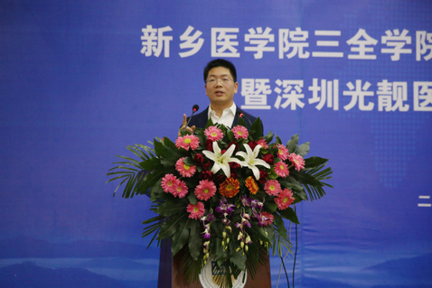 1月20日,我校光明眼科学院成立仪式暨深圳光靓医院集团2018年会在我校平原校区举行。来自全省120多名眼科及视光行业专家,基层眼科医院的医护人员代表济济一堂,共商光明眼科学院发展大计。 成立仪式在学术报告厅举行,我校党委书记王志凯,郑州市第二人民医院院长孙世龙,好大夫教育集团创始人赵冰出席参加。 王志凯介绍我校基本情况并致欢迎词。他讲述了三全学院的创办历程、发展成绩及光明眼科学院成立的背景,并对来访嘉宾致以热烈欢迎。他指出,近年来,我校紧密围绕区域经济结构调整和产业转型升级,主动对接郑洛新自主创新示范区和国家创新驱动发展战略,坚持培养优秀应用型医学人才这条主线,优化学科专业结构,创新人才培养模式。学校在转型发展和产教融合方面走在了同类高校前列,光明眼科学院成立就是我校在深入贯彻“十九大”精神,深化教育领域综合改革背景下成立的首个行业学院。 孙世龙致辞,他讲述了光明眼科学院的治理结构和合作共建各方的职责分工,他指出,光明眼科学院的成立对促进眼健康产业的发展具有重要且深远的意义,希望相关合作共建单位齐心协力,共创光明眼科学院的美好明天。 王志凯、孙世龙、赵冰共同按下了象征光明眼科学院成立的启动球。 光明眼科学院执行院长元帅代表光明眼科学院汇报了2018年工作计划。他从牢记高等教育使命,把握行业学院内涵;整合各方战略资源,打造开放共享平台;找准行业学院定位,发挥行业育人价值三方面汇报了2018年光明眼科学院工作计划。并对相关合作方应提供的智力支持,资金支持,政策和制度支持提出了明确的要求。 开幕式后,大会进入主题发言和研讨阶段。郑州市第二人民医院孙世龙院长,眼视光行业专家石迎辉博士,平安万家邹洁琼总经理等代表分别结合本单位发展经验,围绕眼科保健,眼视光发展,县域医共体发展等眼健康与保健行业的发展和存在的困境展开主题发言。 仪式前,与会代表参观了我校护理学院和图书馆,一致对我校为学生提供的智慧学习场所和先进实训场所给予高度评价。 仪式后,与会代表观看了我校举办的题为“心向光明,砥砺前行”的文艺演出。