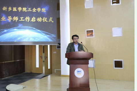 4月11号上午,我校在行政楼三楼报告厅举行学业导师工作启动仪式。我校党委书记王志凯,党委副书记王金文,副院长王彦杰,教务长杜华贞,学务长邱永建出席,各院系(部)、书院等部门负责人参加。 首先,王金文宣读《新乡医学院三全学院学业导师工作制度》。 随后,王志凯致辞。他指出,学业导师工作制度作为实现高等教育目标的一种辅助制度,在教师和学生之间建立一种“导学”关系,有利于教育质量的提高,有利于个性化教育的实现,加强学业导师队伍建设,有助于加强学校教风、学风建设,有助于落实立德树人的教育思想,有助于双院沟通,有助于专业教育和通识教育的融合发展,在全面推进学业导师制度之际,全院上下要转变观念,统一思想;明确目标,履行职责;增进交流,共同发展。 最后,基础医学院教学秘书谢永生、崇德书院副书记杨翠苹分别作为教师代表和辅导员代表进行发言。谢永生认为学业导师制是结合我校“以人为本,科学管理,突出特色,创新创业”的教育理念,以提高教学质量,完善培养模式,促进学生全面发展为目标的新制度,对于加入学业导师队伍感到非常荣幸;杨翠苹表示学业导师的启动,标志着“导学”机制的建立,不仅为专业教师提供了社会服务平台,规范了双院协同育人机制,也为辅导员的进步与发展搭建了良好平台,激励辅导员在教学和科研上向专业教师看齐,有利于通识教育教学的稳步发展。