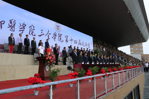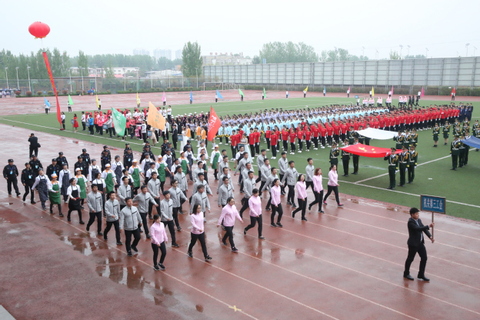 春雨如丝,细雨蒙蒙。4月12日上午,我校第十四届运动会在平原校区风雨操场隆重开幕。我校党委书记王志凯,党委副书记王金文,副院长王彦杰,党委副书记张钢,副院长沈雁霞,教育总督导毛兰芝,教务长杜华贞,后勤总监马波,财务总监王延生,学务长邱永建出席,学校各单位4000余名师生参加,开幕式由院办主任史世锋主持。 伴随着激昂的《运动员进行曲》,国旗队、彩旗队、裁判员队、各书院以及教职工代表队迈着矫健激昂的步伐,喊着整齐响亮的口号依次入场。 在庄严肃穆的国歌中,全体肃立,奏唱国歌,运动会正式拉开了序幕。 首先由本届运动会组委会主任委员王金文为开幕式致辞。他代表组委会向尽心筹备运动会的全体师生致以衷心的谢意,号召大家秉持着“安全第一,友谊第一,比赛第二”的原则,团结协作顽强拼搏,赛出风格,赛出水平,并预祝运动员取得优异成绩,运动会取得圆满成功。 随后,参赛运动员代表赵洪旭及裁判员代表任盼红进行庄严宣誓。 王志凯宣布新乡医学院三全学院第十四届运动会开幕。 开幕式后,团体操表演随即开始。各团体操代表队的队员们精神饱满热情,表演青春洋溢,不断引来现场师生的喝彩和欢呼。团体操表演的编排创意更是精彩绝伦,展示了各书院较高的大型团体操组织和表演能力,展现了全校师生蓬勃向上的朝气和活力,表达了年轻一代对伟大祖国的热爱之情。 据悉,本届运动会共持续两天,学生组共设置团体操、田赛、径赛、趣味竞赛等项目,教职工组设置跳高团体赛、袋鼠跳、托球跑等项目。