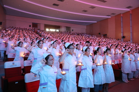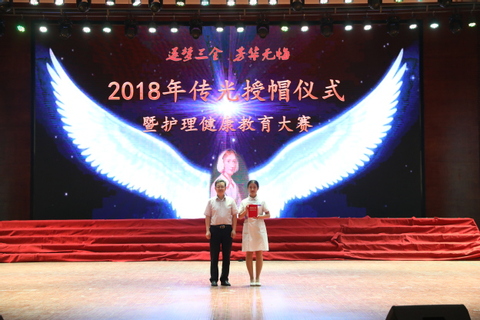 5月18日下午,我校在平原校区闻德大礼堂隆重举行2018年“逐梦三全,芳华无悔”传光授帽仪式暨护理健康教育大赛。学校党委书记王志凯,党委副书记王金文,副院长王彦杰,教育总督导毛兰芝,教务长杜华贞出席,护理学院、学务部、德馨书院、崇德书院的部门负责人及即将走向临床一线实习的近千名护理学专业学生参加。 活动在展现南丁格尔故事的舞蹈《战地天使》中拉开了序幕。首先,王志凯致辞,他强调,本次比赛是在学校“三个全面”办学思想指导下推进教育教学改革的重要举措,作为新时代的护士,大家在工作中要勇于创新工作思路和方法,不忘初心,传承使命,成就平凡而伟大的护理事业。 在悠扬的乐曲中,护理学院院长薛松梅为护生们传光,神圣的火种刻画着护理事业新老接替的轮回,体现南丁格尔精神的不灭光辉。在授帽环节,来自临床一线的7位护理前辈为即将进入临床实习的护生代表戴上圣洁的燕尾帽,把象征南丁格尔“燃烧自己,照亮别人”精神的火种传递到下一代护理人手中。随后,护理学院教师代表陈亚南带领所有实习生在南丁格尔像前庄严宣誓,掷地有声的誓言在跳跃的烛光中回荡。最后,仪式在慷慨激昂的合唱《中国护士之歌》完美结束。 最后,健康教育大赛以情景剧形式进行,同学们将护理专业知识、操作技能、饮食疗法、心理护理、人文关怀等融入节目当中,将枯燥的宣教知识谱写成歌曲、改编成健身操,寓教于乐的表演形式获得了大家的阵阵掌声,让大家在轻松愉快的气氛中掌握了护理健康知识。经过激烈紧张的比拼,利用动画片演绎如何科学看待艾滋病的“真情红丝带”团队获得一等奖。 本次活动旨在传承南丁格尔精神,使新一代护理人学会用真心、爱心和责任心对待每一位病人,增强作为一名护士的责任感和荣誉感。