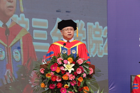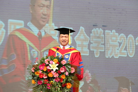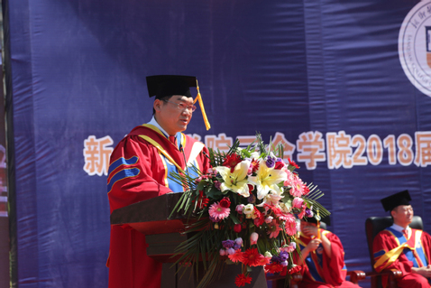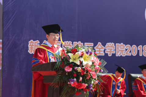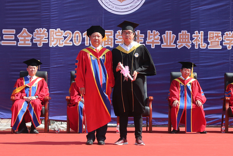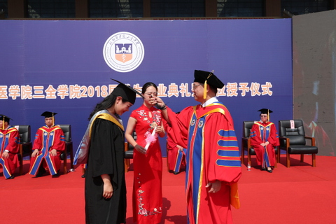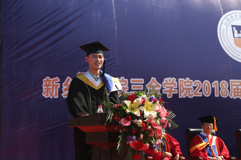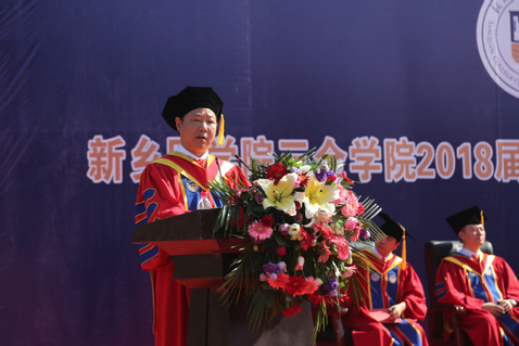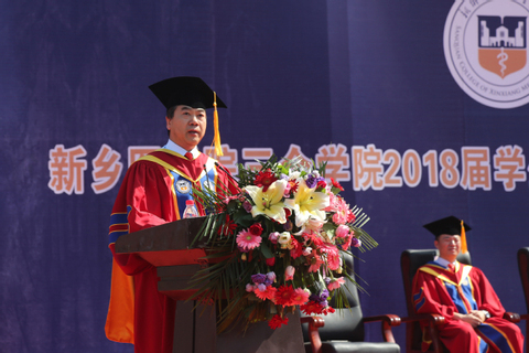 6月28日上午,新乡医学院三全学院2018届学生毕业典礼暨学位授予仪式在平原校区体育场和新乡校区篮球场同步举行。中美集团总裁、新乡医学院三全学院董事长陈广飞,新乡医学院三全学院学位评定委员会委员,学校全体校领导,毕业生家长代表,各教学院(系、部)、各书院、各职能部门、各党总支负责人、全体毕业班辅导员及2018届学生参加。典礼由我校党委副书记王金文、副院长王彦杰分别在两校区主持。 为确保两校区5175名毕业生充分参与到典礼中来,学校沿用“两地直播”的创新形式,在新乡校区和平原校区实现了同步进行、有机融合、实时互动,为2018届毕业生送上一场精彩而隆重的离别盛宴。 典礼现场,气氛庄严肃穆而又爱意无限。毕业生们依次踏过别致、走心的“毕业门”,在“三全时光列车”里追忆大学时光,在“请假条”前纷纷合影留念,成了典礼现场一道道亮丽的风景线。典礼开场前,在庄严的音乐声中,杜华贞教授和卢龙斗教授分别手持威严、崇高的权杖,引领两校区领导及学位委员会成员健步入场,展现了学术至上、人文至上的心灵呼唤与三全人勇于创新、追求卓越的精神风貌。随后,进行了庄严的升国旗仪式。 首先,杨捷院长在平原校区致辞。他言语生动、饱含深情,向同学们悉心叮嘱了“走心的三句话”: 一、“要经常对自己说:‘厉害了,我自己!’” ——他希望大家都能做一个“自拍时永远站在前排”、“微笑时永远露出牙齿”、拥有超强自信的人,不要在随波逐流中迷失自己,更不要在暂时的迷茫中放弃对光明的追求,要带上在三全的奔放与自由,带上三全教会的成长与成熟,在大浪中奋力淘沙、赢得真金。二、“要经常对他人说:‘确认过眼神,你是不会伤害我的人’”——他希望大家永远都是安全的、健康的。他说,在三全经历了“退让性、包容性”的成长之后,踏足另一个圈子、走进更复杂的人际关系时,要继续保留这些优良的脾气秉性,给自己塑造一个安全、干净的朋友圈。他说:“今天,你们是5175位走出三全的校门,我们在未来的10年、20年、N年举行同学聚会时,还必须是5175人。这是母校留给你们的最后一项作业,我坚信,每个人都会、也必须要获得满分。”三、“要经常对人生说:‘可以拥有佛系心态,但更要经常皮一下’”——他希望大家,面对工作中千奇百怪的困难,能坐得住身、稳得住心、沉得住气,更能偶尔“皮一下”、傲娇一下、创新一下、突破一下,始终坚守真理之气、担当之气、创新之气,要在心被扎得百疮千孔之后,还能高喊一句“老铁,我们再来!” 王志凯书记在新乡校区作毕业寄语。他作为“同学们最熟悉的陌生人”,首先向大家表达了感谢与抱歉,接着送上了三句肺腑之言:一、“我希望,你们能读万卷书,行万里路”——身处光速发展的变革时代,社会万象正呈现指数式的变换,他希望大家树立终身学习的观念,不断积累知识、更新知识,敢于突破职业生涯的舒适区和人生境遇的天花板,将自己的所学、所知,大胆地运用到更广阔的天地中去。二、“我希望,你们能锲而不舍,持之以恒”——他说,历史一定会把等待机会的人、摇摆不定的人、畏首畏尾的人无情拍倒在沙滩上,但却会让创造机会的人、自信从容的人、勇敢搏击的人永远光芒万丈。这个世界除了一直在倡导“人人都献出一点爱”,更在倡导“人人都能对自己的人生负责”。他希望大家保持宁静的定力和稳定的耐力,坚定不移地朝着心中的理想扬帆远航。三、“我希望,你们能始终保持良好的修养”——他说,专业知识有保质期,学会做人才能受益一生;自我约束基础上的自由,顾念别人感受后的善良,自知、自制前提下的自觉,才是根植我们内心、注定会开花结果的良好道德修养。最后,他说:“希望大家保持‘该生优秀,永远免检’的卓越自信,做一个一天比一天过得更快乐的人。我们在‘全’世界,等你们‘王者’归来!” 郭明好教授代表教师作题为《愿你做个有思想的小人物》的发言。他声情并茂、幽默风趣,引得现场师生欢笑连连。他认为,小人物是一种品格、一种修养、一种胸襟、一种姿态、一种风度、更是一种谋略,它代表着豁达和洒脱,代表着成熟和理性。他说,“有思想就是有梦想,有思路”;“梦,是心灵的思想,是我们的秘密深情。在实现梦想的过程中,思路清晰远比卖力苦干重要,选对方向远比努力做事重要,做对的事情远比把事情都做对重要”;“要有思想,不会思则忙,不会看则瞎”;“生活中不都是顺景,只要学会爬起来,摔倒就成了锻炼,反而会增加生活的历练和情趣”。他告诉同学们,在未来的岁月里,“希望你能时不时地遭遇不公,使你更加懂得公正;能偶尔遭遇背叛,使你更加领悟忠诚;能感受到孤独,使你更加珍视友谊;能被人无视,使你更加懂得倾听;能感受痛楚,使你更加懂得同情。”他希望大家永远记住,自己永远只是一个小人物,是一个有梦想、有思路、有良心的三全人。 毕业生代表梁鹏波、刘哲彰发言。他们分别代表两校区的毕业生向辛勤培育学生成才的各位领导、老师表达了最衷心的感谢,向多年来辛勤操劳的父母表达了最崇高的敬意,向几年来朝夕相处的兄弟姐妹表达了最真诚的祝福。他们说:“吾辈大好青年,当不忘在三全之所学,让数年的积累绽放在祖国最需要的地方,在伟大复兴路上书写精彩人生”!他们见证了母校