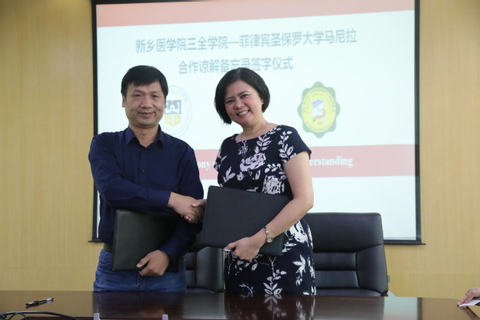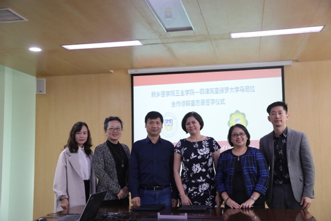 10月23日上午,菲律宾圣保罗大学(Saint Paul University)教学副校长Dr. Dychangco M. Atilano、护理学院院长 Dr. Olivar J. Ramelb一行四人来我校洽谈交流。我校副院长王彦杰接待来访客人,护理学院部门负责人及护理学院教师、外事部相关人员参加。 首先,王彦杰对Dr. Dychangco M. Atilano一行来校交流表示欢迎。他从我校的发展历程、办学理念、人才培养、国(境)外交流等方面介绍了我校的办学情况。Dr. Dychangco M. Atilano向与会人员介绍了圣保罗大学办学历史沿革、专业设置、留学政策等内容,并播放了菲律宾圣保罗大学的宣传视频;随后,双方就人才培养、教师互派、学生互换、学历提升项目和双语师资培训等问题进行了交流和探讨。 王彦杰表示,圣保罗大学为我校在菲律宾国家合作的首所高校,圣保罗大学的来访,开拓了我校国际化合作的新领域、新平台。相关院系和职能部门要加强后期的跟进和联系,促进合作意向落地实施。 最后,Dr. Dychangco M. Atilano和王彦杰分别代表两校签署了合作备忘录并合影留念。 会谈结束后,在王彦杰等人的陪同下,Dr. Dychangco M. Atilano一行分别参观了我校图书馆和挪度(国际)护理实训中心等地。Dr. Dychangco M. Atilano对我校的基础设施建设给予了高度评价,她表示希望选派护理专业研究生和博士生来我校交流。 本次圣保罗大学来访为两校的合作搭建了桥梁,奠定了基础。两校将以此次交流为契机,积极推动教师互派、学生互换和双语师资培训等项目的实施。 学校简介: 菲律宾圣保罗大学建于1912年,位于菲律宾首都马尼拉,是菲律宾一所重点大学,现有在校生近 40000人。菲律宾圣保罗大学设有专科、本科、硕士和博士层次教育。该校是中国教育部留学认证的一所菲律宾综合性重点大学。