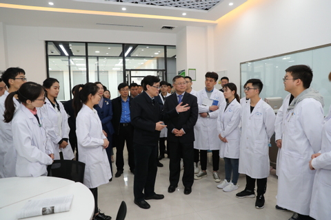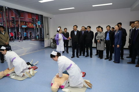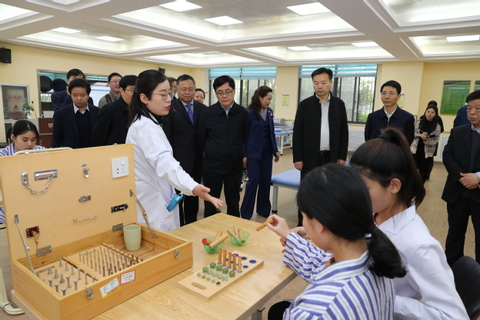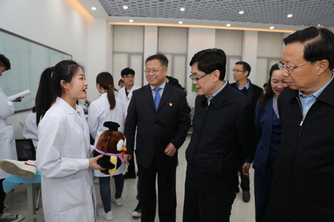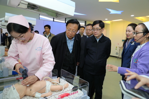 4月12日下午,全国政协副主席、农工党中央常务副主席何维莅临我校平原校区调研指导工作。全国政协常委、省政协副主席高体健,全国政协常委、农工党河南省委专职副主委花亚伟,新乡市政协副主席吴岳善,农工党新乡市委主委张帆、专职副主委徐新海、秘书长李家柯,新乡医学院党委书记陈建国,校长任文杰,副校长朱武凌陪同调研。中美医疗集团总裁、三全学院董事郭华伟,我校院长杨捷,党委书记王志凯,副院长秦国亮、沈雁霞等与相关部门负责人热情迎接。 下午4点,何维等领导首先参观了我校图书馆,察看多媒体文献学习区、研修室、图书阅览区等处,对图书馆的设计高度评价。他说:“图书馆有现代化风格,能人性化地设计细节,给学生们提供创新性的学习服务,这很好。” 随后,何维参观了护理学院国际护理培训中心、医养康护实训中心、影像实训中心,分别观摩了各具特色的实验实训环境,体验智慧教学课堂,听取相关负责人关于硬件设施、专业特色、教学理念、教学方式的汇报,对学校实验室条件给予肯定。 何维亲切询问杨捷院长学校的办学情况,就学校的创新发展、合作办学模式等内容与在场人员进行了交流。何维回忆起自己的大学时光,感叹现代教学技术发展迅速。他对我校体验式教学方式、“厚人文,精技术,重应用,可持续”的教学理念,产教融合培养模式给予高度评价。 参观结束时,我校学子向何维献上学校吉祥物“全博士”。何维向我校学子分享了医学生应具备的四项本领。他指出:“第一,要有医德,心系患者的性命与健康;第二,要有沟通的能力,与患者交流需要良好的表达技巧;第三,提高学习能力,医学是实践性的学科,面对的患者千千万万,要学会吸纳现代医学的原理,而科技每天都在更新,所以要不断地学习,把学习与实践相结合;第四,提高专业技能,这是每个医生都必备的一点,唯有技能方能行天下。” 最后,何维寄语我校发展:“医家国际化,医术前沿化,医院家庭化,三全鸣天下。” 他寄语我校学子:“厚德以承载济世之理想,沟通以搭建人心联结之纽带,善学以提升医者知行之路径,高术以彰显大医之精粹!”