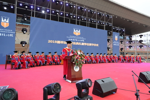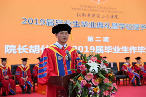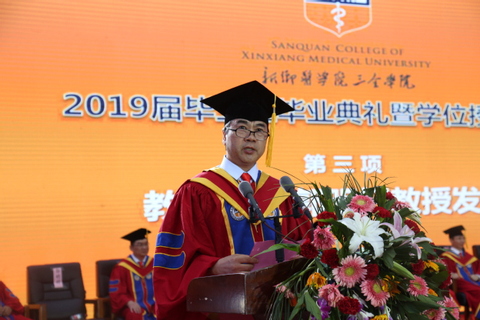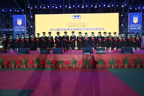 仲夏时节,三全校园清风徐徐,满目苍翠。6月19日晚,新乡医学院三全学院2019届毕业生毕业典礼暨毕业晚会在平原校区风雨操场举行。新乡医学院党委委员、副校长朱武凌,新乡医学院三全学院学位评定委员会委员,全体院领导,毕业生家长代表,各教学院(系、部)、书院、职能部门、党总支负责人,毕业班辅导员及2019届全体毕业生参加。 典礼现场,气氛庄严肃穆而又充满爱意。宽阔的操场上凉风习习,毕业生们在留言墙上踊跃签名,在红地毯上盛装走秀,在多个寄语展架前花样合影,处处是青春亮丽的风景。 活动第一阶段为2019届毕业生毕业典礼暨学位授予仪式。仪式由副院长王彦杰主持。 在庄严的音乐声中,教务长杜华贞教授手持崇高、威严的权杖,引领学校领导及学位委员会成员健步入场。随后,进行了庄严的升国旗仪式。 院长胡仕坤为毕业生致辞。他饱含深情,勉励同学们努力成为受人尊敬的三全人,争做蓬勃进取中的学校代言人。他嘱托同学们:一要争做爱学习的人。勤于学、善于思,将知识学深、悟透,争取开口说出的话都能“引起极度舒适”;勇于探索、突破局限,为知识二次赋能,将知识转化为高效、高质量完成工作的强大动力;以深刻独特的思想和兼容并包的情怀,将所学、所思与所行、所用有机结合;努力充电,永远保持满格向上的姿态,不断实现自我价值,为家庭、为社会做出更大贡献。二要争做自律的人。希望同学们以自律的高标准要求自己,从生活中的点滴做起,既要守得住道德底线,也要守得住一路退后的发际线;既要管理好身体的重量,也要管理好头顶的发量。通过积少成多、积土成山的过程,达到习惯养成的目的,修炼成一名高度自律的三全人。三要争做敢于担当的人。胡院长说,三全学院优秀的代言人能担当责任,同学们的能力是学院内涵建设深度的体现,同学们的高度是学院立德树人多维度的体现。他期待大家有魄力出线,有水平出色,更有实力出彩。最后,他勉励毕业生们擎起持久不变的报国情怀,与时代的脉搏同频共振,与祖国的发展同向同行。 教师代表郭明好教授发言。他首先祝贺近五千名毕业生顺利毕业,随后他从学生们自认为的“懂”过渡到同学们并不自知的“不懂”,引发大家在欢笑声中重新思考自己是否真的“懂”。他说:懂,是世间最珍贵的沟通;懂,是人间最难言的柔情。他认为,同学们更应该检讨自己还不懂什么,要秉持怀疑的态度,独立思考,也要多交流、沟通,在交往相处中尽自己所能的去了解他人、尊重他人、关心他人。“生命中最艰难的阶段不是没有人懂你,而是你自己不懂自己,希望同学们多花心思来了解和读懂自己”。他勉励同学们,“‘懂’的终极目的是‘和’,懂了才会通,通了才会平,平了才会和”。最后,他衷心祝愿同学们能有一批懂自己的人、自己懂的人,生活舒心和谐。他的发言幽默风趣、深入浅出,现场师生欢笑之余有所感悟。 毕业生代表高斌发言。他代表毕业生衷心感谢母校的悉心培养与老师们的殷切教诲、亲友的支持关爱、同窗的暖心陪伴。他说,来到三全学院学医是自己做出的最正确的选择;走向社会,他将做好三全的代言人,持续奋斗,在未来有大作为。他代表全体毕业生祝福母校永立潮头、越办越好。 杜华贞宣读了《新乡医学院三全学院关于准予2019届4984名毕业生毕业的决定》和《新乡医学院三全学院关于授予2019届4076名本科毕业生学士学位的决定》。 在神圣庄严的气氛中,胡仕坤为学士学位获得者代表扶正流苏,授予学位证书。 学务长邱永建宣读《新乡医学院三全学院关于表彰2019届优秀毕业生的决定》,出席领导和专家委员为“省级优秀毕业生”和“校级优秀毕业生”代表颁发证书。 活动第二阶段为2019年毕业晚会。晚会以“从你的‘全’世界路过”为主题,以“致青春”“那些年”“不说再见”三个篇章接续呈现。舞台两侧设置微博墙和微信墙,毕业生及在校生观看晚会时可全程参与互动,发表感受及祝福。礼炮齐鸣,烟花怒放。全体毕业生合唱《我和我的祖国》,正式拉开晚会帷幕。 挥舞的荧光棒、震撼的歌声,激发出在场所有人对祖国的热爱之情。淅淅沥沥的小雨从天而降,表演嘉宾和现场观众热情不减,气氛热烈。主持人分别从各书院毕业生就坐区域后方、诵读各书院的院训缓缓入场。器乐《情迷》开启晚会第一篇章——“致青春”,抒发了我校学子不舍“全世界”与向往未来的情感;街舞《青春》展现了青春无畏、敢拼敢闯的青春力量。 第二篇章——“那些年”,伴随着素颜青衫、青丝墨染铺展开来,宛若仙子的舞者完美演绎《梦》,使得现场嘉宾沉浸在一场场美好梦中;小品《从你的全世界路过》带领同学们回忆多姿多彩的“那些年”,生活点滴汇聚成“一生兄弟(闺蜜),一生珍藏”的青春缅怀;互动环节,节目组请来了“最想看到的人”毕业生辅导员代表杨洛老师,从上海赶来的杨老师为毕业生悄悄带来了惊喜,让全场毕业生欢呼雀跃;武术《卧虎藏龙》引得观众连连叫好、掌声不断。 第三篇章——“不说再见”,大合唱《往日时光》《彩虹》,唱出了毕业生那浓得化不开的不舍与祝福;舞蹈《你好,再见》娓娓诉说着青春离情。 毕业晚会在《我们都是追梦人》的歌声中圆满落幕。 依依别母校,青春不散场。祝愿2019届全体毕业生前程似锦,一路顺风,在人生广阔的舞台上