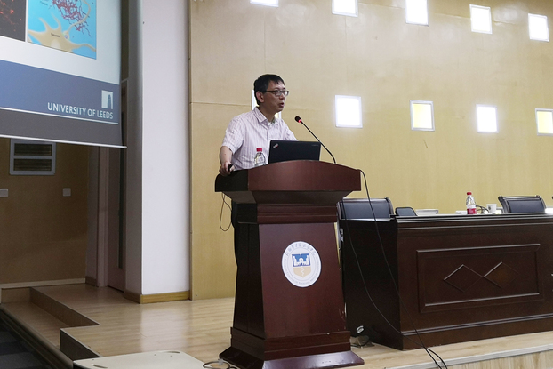 6月24日下午,英国利兹大学生物科学学院江林华教授应邀在我校行政三楼学术报告厅做学术报告。基础医学院、药学院、护理学院、科研部等11个相关部门负责人及师生现场聆听。讲座由科研部主任张慧英主持。 首先江林华以“TRPM2通道与神经退变性疾病”为主题重点介绍了细胞膜上TRPM2离子通道在淀粉样多肽引起的神经退化性疾病发生中的重要作用,详尽阐述了氧化应激、钙离子和锌离子紊乱通过激活溶酶体膜上TRPM2通道开放、导致线粒体功能障碍、进而引发阿尔兹海默症的机制。报告后,我校师生积极与江林华进行互动,江林华逐个做了详细解答。 科研工作是学校综合实力的重要体现。青年教师面对教学与科研工作的双重挑战,如何处理好二者之间的关系,江林华给出了很好的解答,他提倡青年教师在教学工作之余大量阅读文献,找到自己的兴趣点,在研究现象的基础上深入思考,寻找最恰当的方法探索其发生的内在机理,同时开展应用性研究,找到防治疾病的新技术或者开发针对关键靶点的新药物;在研究过程中遇到问题要经常问自己为什么要这样思考,为什么要这样做。通过与江林华的互动,进一步激发了我校师生对科研工作的兴趣。 最后江林华还给大家分享了自己在英国培养学生的心得体会,他从不用刻板的时间概念要求学生,而是采用积极引导的方式。他表达了对我校的高度肯定,并热情地邀请我校有志师生去他的实验室做学生或访问学者。我校教师发展中心主任李东亮教授与江林华教授进行了互动,共同勉励我校师生积极主动开展科研活动、造福人类。 专家简介: 江林华,教授,英国利兹 (Leeds) 大学 (英国名校联盟“罗素大学集团”创始成员) 生物医学科学学院生物医学/药理学博士 (1995-1999)。 2006至今利兹大学生物科学学院生物医学科学学院实验室主任 (Lab Head) 和博士生导师,2007年取得永久教职。兼任法国图尔 (Tours) 大学/法国国家健康与医药医学研究 (INSERM) 客座教授、河南省中英脑功能联合实验室主任、河南省神经疾病离子通道机制及其干预高校科技创新团队带头人、新乡医学院特聘教授。江林华博士受邀担任英国、法国、荷兰、捷克、澳大利亚、中国等多家研究机构研究项目评审和Nature Structural and Molecular Biology、Journal of Neuroscience等60多家科学杂志特邀审稿人。现任Frontier in Pharmacology-Ion Channels and Channelopathies 等杂志学术编委 (Associate Editor) 。江林华教授还是我校学术委员会委员,在学术管理、引领学术前沿和应用研究方面发挥积极作用。