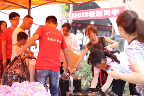 金秋送爽喜迎八方学子,喜气洋洋开启“全”新征程。8月27日至8月29日,我校彩旗飘扬,一派热闹繁荣的景象,来自全国各地的7000余名本科、专科、专升本新生陆续来校报到。学校党委书记杨捷、院长胡仕坤等校领导到学校各区域指导迎新工作。 27日早上7点,迎新工作人员全部到岗,各项准备工作就绪。7点30分,满怀希望和憧憬的新生和家长们背负行囊陆续到校,精神抖擞的书院师生和志愿者用周到、贴心的服务欢迎新生们的到来。 上午8点,杨捷、胡仕坤先后来到学校大门口、各书院新生签到处、宿舍楼、迎新服务站点等处,详细了解各书院迎新工作的开展情况,与前来报到的新生以及家长亲切交流,慰问现场工作人员以及学生志愿者。在智行书院,杨捷询问新生报到情况,要求工作人员优化流程,科学高效工作,及时解决新生困难。他来到宿舍与新生家长亲切交谈,了解学生的具体情况并介绍学校相关的配套措施;在学校大门口,胡仕坤慰问指挥交通的交警和安保人员,叮嘱工作人员要把安全畅通放在第一位,做好交通疏导,及时运送新生行李,解决家长的后顾之忧。 迎新期间,学校调派8辆大巴分别在郑州火车站、郑州高铁站、新乡火车站、新乡东高铁站等地方设立了迎新点,不间断接送学生及家长来校报到;校门口12辆迎新服务电瓶车来回运转,接送新生及家长到各书院。近千名学生志愿者,遍布校园各个角落,为新生提供报到咨询、手续办理、行李寄存、物品搬运以及维持交通秩序等服务。100余名党员教师以及150余名党员学生组建党员志愿者服务队,设置“党员志愿服务台”,开展迎新服务及高校宗教政策、校园安全防范等方面的宣讲。为确保交通顺畅,平原新区交警大队、执法局及祝楼乡派出所派出10名交警及治安警协助保卫科80余名保安在校门口维持交通秩序,开展消防安全排查工作。 各书院在保证新生按照正常流程办理入学手续的基础上,准备了各具创意的迎新活动,吸引着“小石臼”们的目光,也赢得了学生家长的一致好评。仁智书院“新仁报到”的书写墙上写满了新生的姓名,不仅是身份的确认,更昭示着新的人生旅途的开始;羲和书院门口三个卡通人物吸引了不少新生和家长的注意,“我要做学霸”“我要做女神”等字句给人带来信心和勇气;精诚书院用4只色彩鲜艳、可爱活泼的“大橙子”,与新生们来一次与众不同的“邂逅”;崇德书院启动“时光邮筒”,让新生和家长在明信片上写下各种祝福,用一颗感恩的心大声说出自己的爱;德馨书院用全部新生的名字拼成“2019DX”图样,从入校就培养新生对书院的归属感;智行书院巨大的条幅悬挂在楼宇之上气势壮观,智能机器人“图图”应邀来到现场与新生亲密互动,夺人眼球。 迎新的校园里处处展现着便捷和热情。电子科学与技术专业的大二学生江杰是今年的学生志愿者,主要帮新生和家长运送行李。当问他累不累时,他开心地说:“去年这个时候,我来学校报到,当时学长学姐们是志愿者,他们的帮助让我记忆犹新。今年,我有幸成为崇德书院的迎新志愿者,我会尽自己最大能力,让新生有家的感觉。” 来自河南平顶山的2019级新生吴梦琦说:“第一次来到学校,心情特别激动。感觉学校非常漂亮,学长学姐们也很热心,跑来跑去帮我们拿行李、办手续,真的非常喜欢这里。” 据悉,今年我校面向全国17个省(市、自治区)共录取普通本科生3300人,专科生1568人,面向省内录取专升本学生2219人,整体招生形势良好,生源质量持续提升。按照学校迎新工作安排,新生入学报到后将进行新生军训、新生入学教育、开学典礼、迎新晚会等后续事宜。