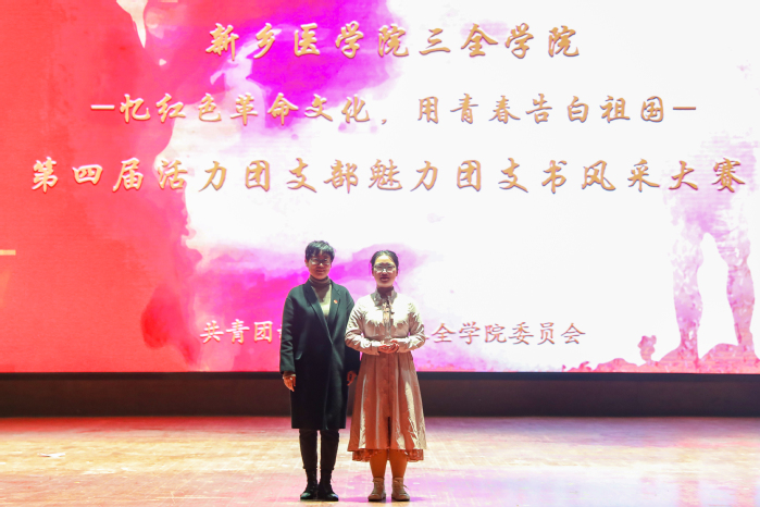 11月12日晚,我校在平原校区闻德礼堂举办第四届“忆红色革命文化,用青春告白祖国”团支部风采大赛。校团委书记马素娟出席,各书院团总支书记及千余名师生参加。 本次大赛邀请到马克思主义学院王桂琴副教授、党委宣传部吕娇楠老师、党委办公室李超楠老师、党委组织部程俊玲老师、学务部就业创业指导服务中心杨嘉笙老师担任评委。 经过半个月的选拔,最终8个团支书和8支团支部进入到风采展示环节。比赛分为“魅力团支书”和“活力团支部两个展示环节。在风采大赛上,8支团支部围绕组织建设、制度建设、学风建设等进行一一展示。 红十字协会团支部通过歌曲演唱加手语表演的形式表达了中华儿女激情满怀为实现中国梦而努力奋斗的心情。崇德书院本科假肢矫形工程70班团支部通过优美的诗朗诵、壮丽的歌曲用青春告白祖国。智行书院本科临床医学171班团支部以《燃仁智之魂,颂青春之歌》作为主题展现了革命前辈用滚烫的鲜血,为祖国后辈,开辟了崭新的天地;用生动庄严的腔调展现出长征英雄们抛头颅洒热血的英雄气概。羲和书院本科临床医学7班团支部用悲壮的情景剧、绚丽的歌曲将红色青春献给祖国。精诚书院中外护理17班团支部通过主题鲜明的情景剧唤醒我们红色的记忆。校艺术团团支部用魅力四射的舞姿发扬着当代共青团气势磅礴的精神风貌。仁智书院本科助产学87班团支部通过优雅的诗朗诵充斥着我们对伟大祖国的款款深情。德馨书院本科医学检验技术28班团支部带来的情景剧表演洋溢着革命战士不畏敌人勇猛奔赴战场的豪情壮志。 各团支部通过合唱、朗诵、情景剧、舞台剧等形式进行了支部介绍和风采展示,同时由30余名团支部代表带来集体朗诵《我的祖国》,饱满的热情展示了青年一代对祖国的热爱,充分展示了我校学生积极向上的精神面貌。 经过激烈角逐最终,智行书院本科临床医学171班团支部荣获一等奖; 羲和书院本科临床医学7班团支部、崇德书院本科假肢矫形工程70班团支部、德馨书院本科医学检验技术28班团支部荣获二等奖;红十字协会团支部、精诚书院中外护理17班团支部、艺术团团支部荣获三等奖;仁智书院本科助产学87班团支部荣获优秀奖。 通过此次活动,彰显了团支部的活力与担当,与党同呼吸、与时代共奋进的决心,突出新时代新青年对红色革命精神的传承,表达了对祖国深厚的情谊。