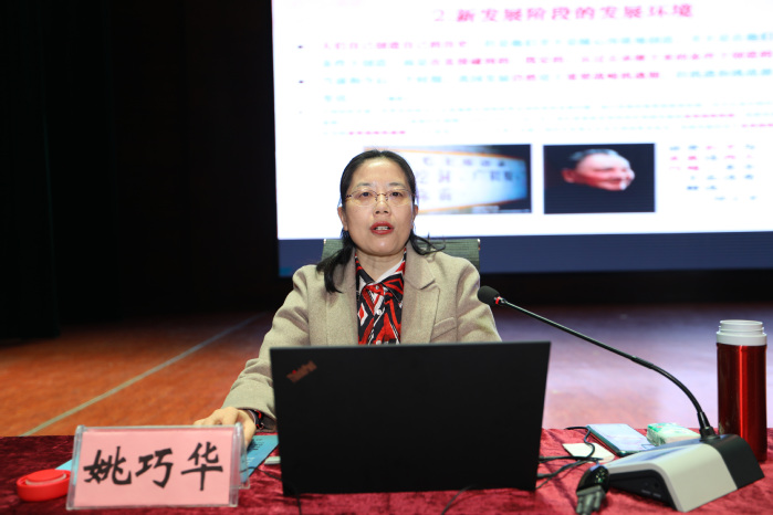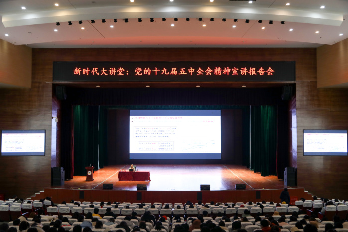 为深入学习贯彻党的十九届五中全会精神,推动党的理论创新成果入脑入心,12月25日上午,我校邀请省委党校姚巧华教授为900余名师生进行全会精神的详细解读。校党委副书记吕莎主持宣讲会。 “从十九大到二十大,是‘两个一百年’奋斗目标的历史交汇期。我们既要全面建成小康社会、实现第一个百年奋斗目标,又要乘势而上开启全面建设社会主义现代化国家新征程,向第二个百年奋斗目标进军。”在平原校区闻德礼堂,姚巧华深入浅出地阐述了十九届五中全会的重大现实意义和深远历史意义,重点讲解了《建议》的核心要义,包括新发展阶段的环境变化和机遇挑战、新发展理念的内容和要求,构建新发展格局的现实途径等,提出必须坚持党的全面领导和坚持高质量发展的结论。 姚巧华表示,党的十九届五中全会是我国将进入新发展阶段、实现中华民族伟大复兴正处在关键时期召开的一次具有全局性、历史性意义的重要会议,这次会议描绘盛世图景,明确前进方向,凝聚磅礴力量。要深刻认识新发展阶段,要全面贯彻新发展理念,要着力构建新发展格局。把握好阶段特征、明确阶段要求,才能更好地开启全面建设社会主义现代化的新征程。 姚巧华分析,当今世界正经历百年未有之大变局,新一轮科技革命和产业变革深入发展,国际力量对比深刻调整,和平与发展仍然是时代主题。现阶段受疫情影响,世界经济重心有所变动,国际力量对比南升北降、东升西降。经济全球化遭遇逆流,世界进入动荡变革期,单边主义、保护主义、霸权主义对世界和平与发展构成威胁。我国社会主要矛盾已经转化为人民日益增长的美好生活需要和不平衡不充分的发展之间的矛盾。为此,我们应发扬斗争精神,树立底线思维,准确识变、科学应变、主动求变,善于在危机中育先机、于变局中开新局,抓住机遇,应对挑战,趋利避害,奋勇前进。 姚巧华强调,我们要畅通国内大循环、促进国内国际双循环、全面促进消费、拓展投资空间。同时,我们应以推动高质量发展为主题,以深化供给侧结构性改革为主线,以改革创新为根本动力,以满足人民日益增长的美好生活需要为根本目的。要坚持创新发展,把科技自立自强作为国家发展的战略支撑,面向世界科技前沿、面向经济主战场、面向国家重大需求、面向人民生命健康,深入实施科教兴国战略、人才强国战略、创新驱动发展战略,完善国家创新体系,加快建设科技强国。