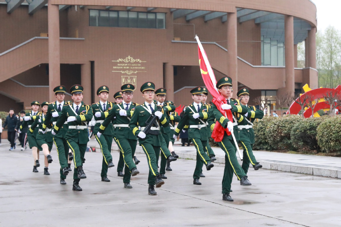 3月1日清晨,我校六百余名师生迎着晨曦,在平原校区闻德广场举行2020-2021学年第二学期首次升旗仪式。我校副院长顾欢出席,学务部及各书院负责人参加。 早上7点整,升旗仪式正式开始。在全体师生的注目下,伴随着指挥员的口令,英姿飒爽的国旗护卫队队员迈着铿锵的步伐,护送着鲜艳的五星红旗来到国旗台下。伴随着庄严的《义勇军进行曲》,旗手振臂一挥,将五星红旗抛向天空,全体师生怀着崇高的敬意,向国旗行注目礼,热忱的爱国之情填满了胸膛。在振奋人心的国歌声中,国旗冉冉升起,高高飘扬在校园上空。 升旗仪式结束后,同学们纷纷表示,在新学期的第一天参加升旗仪式,具有重大意义。校学生会主席田扬帆表达了自己的感想:“我一定会时刻铭记母校的谆谆教导,牢记当代大学生应有的社会责任感与历史使命感,努力学习,奋发有为,为祖国强大昌盛、母校繁荣发展、自身成长成才而努力奋斗!” 升旗仪式作为我校爱国主义教育的重要组成部分,是我校加强学生思想政治教育、成长成才教育的重要形式。新学期首次升旗仪式的举行,意味着新征程的开启,将激发全体师生凝聚战胜疫情、复工复学的信心决心,鼓励学生以积极的姿态、饱满的热情,投入到新学期疫情防控和学习工作中。