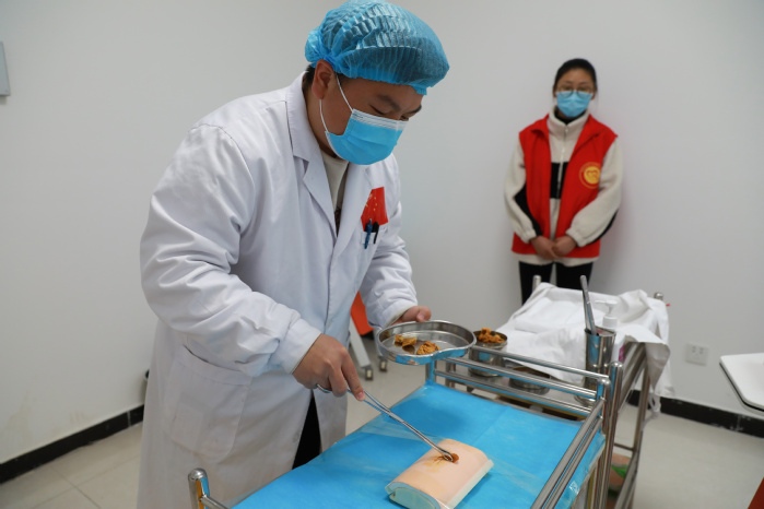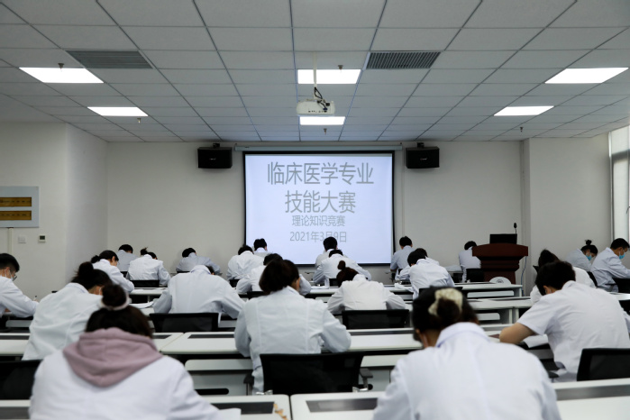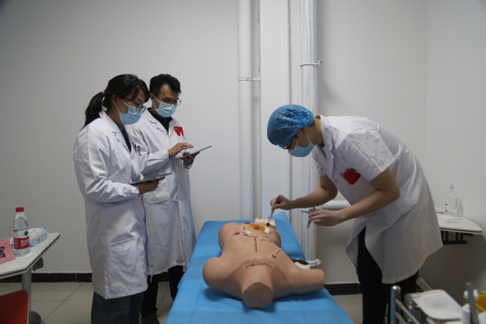 3月9日,在平原校区临床能力培训考试中心,我校成功举办临床医学专业技能大赛暨河南省大学生医学技术技能大赛初赛。我校副院长袁磊、教务长杜华贞莅临大赛现场指导,来自11家全过程教学基地及其他实习医院的12支代表队,共48名临床专业大五实习生参加比赛。大赛特邀我校第二附属医院(新乡市第二人民医院)胸外科主任医师俞星火、儿科副主任医师王世全、骨科副主任医师张有明等16位一线临床专家以及我校临床学院副主任医师谷韶平、副教授臧建新等10位中高级职称教师共同担任大赛评委。 本次大赛作为河南省医学技能大赛选拔赛,不仅考察学生的临床技能水平,更要对学生在医学伦理、人文素质、法律法规、医患沟通和团队合作等方面能力进行考察。 大赛分为理论知识竞赛和实践技能竞赛两个环节。比赛第一个环节为理论知识竞赛,包括单选题、病史采集、病例分析三种题型,内容涵盖内外妇儿等专业知识。参赛选手需在规定时间内完成作答,结束后进入第二个环节。 在实践技能竞赛环节,选手们按照分组在监考教师的指引下分批次有序地进入各赛站,分别进行心肺复苏、体格检查、外科换药、切开缝合、导尿术、穿刺术等6个项目竞赛。在竞赛过程中,选手们沉着冷静,以娴熟的手法、规范的动作,严格按照操作流程,认真对待每一步操作,在规定的时间内完成操作项目,得到评委们的肯定。选手们展示了自身的临床实践水平,表现出医学生临床思维与实践相结合的能力。 经过两个环节比赛,最终从48名参赛选手中选拔10名优秀选手进入决赛前培训,学校将根据培训情况选拔4人参加河南省大学生医学技术技能大赛决赛。 赛后,袁磊对各个教学基地在临床教学中做出的工作进行了高度评价,他指出,在新医学教育改革的背景下,我校应切实加强临床医学教育,改革提升临床医学教育质量,通过临床技能比赛以赛促教,促进教学质量的提升。 为保障防疫安全和大赛的顺利进行,所有参赛选手在核验健康码、体温监测记录表无误且体温检测正常后,参赛选手按照工作人员引导到达比赛现场完成签到。 据悉,本次大赛由我校教务部主办,临床学院承办,大赛得到了学务部、临床教学部等各部门的大力支持和协作。