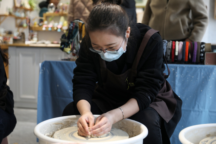 此次活动共分为三部分,其中第一部分为踢毽子与踢沙包活动,此活动将大家带到儿时时光,充满童趣。第二部分为备受期待的陶艺制作体验。拉胚是制作陶瓷的最初阶段,在陶艺老师的耐心指导下,大家亲自体验拉胚的乐趣。陶艺师热情地向大家介绍关于陶艺的演变,传统陶瓷与现代陶瓷的区别,大家一边体验一边赞叹中国陶艺文化的博大精深。陶艺制作不仅是从一把黄土加水到成为一件精美陶瓷品的过程,还是文化的积累、沉淀与传承,教书育人亦是如此,让学生从懵懂少年成长为专业知识型人才,需要教师们从自身出发不断学习,将专业知识传授给学生同时需要将优秀的文化、品质传授给学生,从而培养他们成为德才兼备的时代新人。