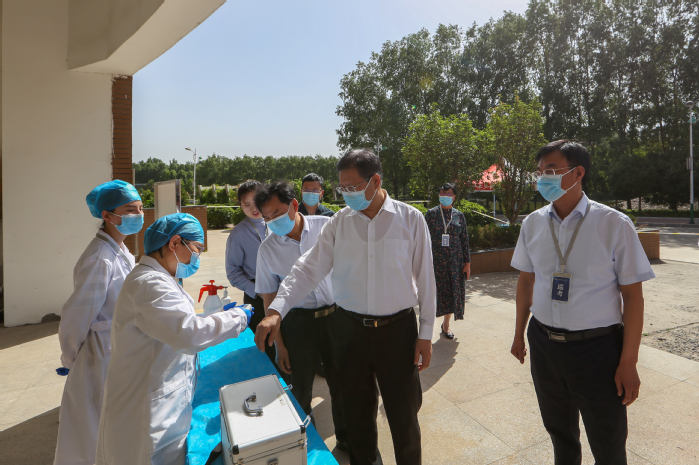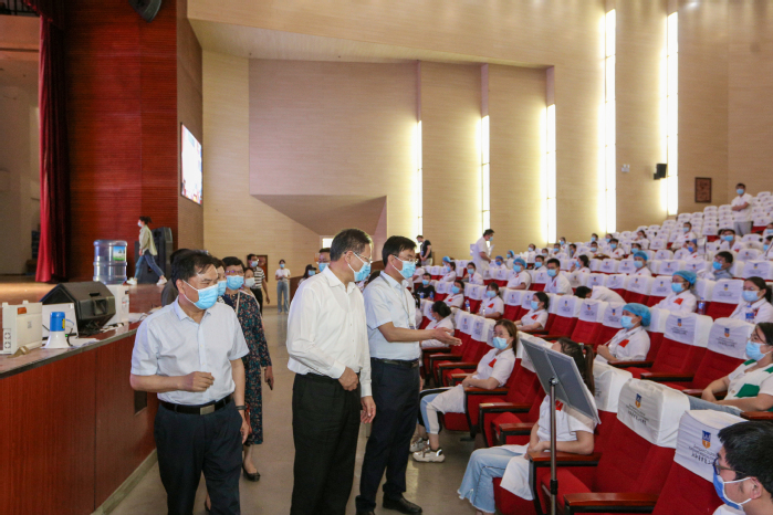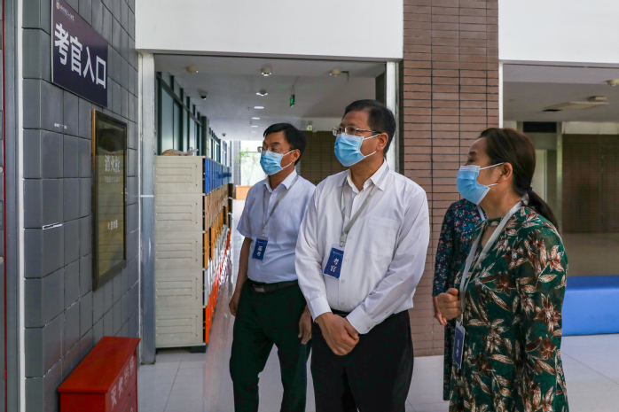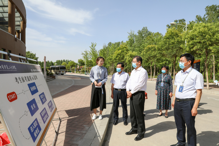 5月28日下午,河南省卫生健康委员会副主任、党组成员王良启,省卫生健康委员会科教处处长王金河一行来到位于我校的河南省医学教育考试中心检查指导住院医师规范化培训和助理全科医生培训结业考核工作。河南省规培中心常务副主任徐玉萍,我校领导胡仕坤、毛兰芝、杜华贞、王之玺及学校住培考试领导小组全体成员陪同检查。 王良启一行巡查了疫情防控检查点、物品存放处,认真检查了候考区、理论考站、总监控室、统分室和考官阅卷室等场所,详细了解了考试组织、疫情防控、考生候考和后勤保障等情况。他向广大考务人员表示慰问,对考务工作作出现场指导。 “中午饭菜怎么样?”“考试的时候千万别着急,稳着来。”在候考区,王良启亲切问候在场考生,使他们精神放松许多。考生们表示,自己会调整状态,放平心态,努力考出好成绩。 检查结束后,王良启对省医学教育考试中心及我校的考核组织工作给予了充分肯定。他指出,医学人才培养事关人民的生命健康安全,一定要严格把好质量关。本次考核是在疫情防控常态化形势下举行的全省卫生系统大型考核,人数多、任务重,但考试中心的整个工作流程组织严谨,防控严密,规范有序。 王良启对考核工作提出三点要求:第一,住培考试要严格按照考核标准进行,考务人员要尽职尽责。严格把关、“无情”执行规则是对患者负责,更是对考生的未来负责,有助于整体提高全省医疗队伍素质。第二,当前,国际疫情形势比较复杂,要继续做好疫情防控不松懈。考试期间,疫情防控是重中之重,必须确保万无一失,一旦发生苗头问题,要严格遵照疫情防控预案展开行动。第三,考试持续时间比较长,尤其是助理全科医生的考核,考试中心要加大物资保障,用贴心的服务为考生、考官、考务人员提供优质的考试环境;考务人员要善于总结经验,吸取教训,积极改进,确保下一年度的考试工作更加顺利。