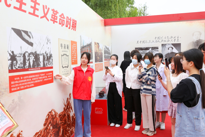 5月25日上午,我校“回眸百年党史,感悟初心使命”党史学习教育大型主题展览启动仪式在平原校区琴湖旁举行。校领导杨捷、胡仕坤、张钢、石永立、马波、薛宏、袁磊等出席,党委宣传部、党委办公室、马克思主义学院等党史学习教育相关部门负责人,各党总支(直属党支部)书记,各书院党员及入党积极分子代表参加。开幕式由校党委副书记吕莎主持。 学校党委书记杨捷致开幕词。他指出,扎实推进党史学习教育,归根结底是要从历史中汲取智慧和力量,办实事、开新局。从建党的开天辟地,到新中国成立的改天换地,到改革开放的翻天覆地,再到党的十八大以来党和国家事业取得历史性成就、发生历史性变革,党的百年发展历史,是一段在内忧外患中诞生、在磨难挫折中成长、在攻坚克难中壮大的光辉历程;也是一部践行初心使命、强化履职担当的奋斗史。为中国人民谋幸福、为中华民族谋复兴,这个初心和使命是激励中国共产党人不断前进的根本动力,也是激励着我们广大党员干部扎实履职担当、立德树人的强大动力。杨捷强调,“坚持把服务中华民族伟大复兴作为教育的重要使命”是新时代党和国家对教育使命的新论断。建设教育强国是中华民族伟大复兴的基础工程,我们要把教育的动力作用充分运用到中华民族伟大复兴的征程之中,以党史学习教育为契机,在多个领域推动学校创新发展、高质量发展,为建设地方性、高水平、有特色、应用型的新型高等医学院校积极贡献力量,用出彩的工作、优异的成绩向党的百年华诞献礼。” 随后,院长胡仕坤宣布新乡医学院三全学院“回眸百年党史,感悟初心使命”党史学习教育主题展览正式启动。 据了解,为深入推进党史学习教育,教育引导广大师生传承红色基因,赓续精神血脉,增强使命担当,我校党委宣传部通过梳理百年党史重大事件、关键节点,精选了大量的文献、图片和音视频资料,设计完成了大型党史学习教育情景式主题展览。该展览包括新民主主义革命时期,社会主义革命和建设时期,改革开放和社会主义现代化建设时期,中国特色社会主义新时代4个历史时期,100多个重大历史事件及中国共产党人的精神谱系,全面展示了党的辉煌成就、成功经验、光荣传统、革命精神,生动地再现了一代又一代共产党人进行伟大斗争、建设伟大工程、推进伟大事业、实现伟大梦想的奋斗历程。 “大家好,现在我们所处的是第一展区“新民主主义革命时期”。请大家随我移步展区,本展区主要展示的是1919年五四运动至1949年开国大典中国共产党新民主主义时期的重大历史事件……”仪式后,在大学生新闻中心广播台讲解员的带领下,广大领导和师生开始有序参观各展区,接受“沉浸式”精神洗礼。 一段段珍贵的文字,一幅幅珍贵的图片,一幕幕感人的革命场景,折射着一个政党光荣的历史,记载着一个民族辉煌的瞬间,也深深感染了每一位参观者。德馨书院的张晨露说:“无数革命先辈前赴后继,浴血奋战,用信仰和忠诚铸就了精神丰碑。作为当代大学生,今后将自觉把爱党、爱国落实到学习生活的各个环节,以更高的责任感和使命感为实现中华民族伟大复兴的中国梦不懈奋斗。”