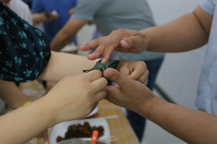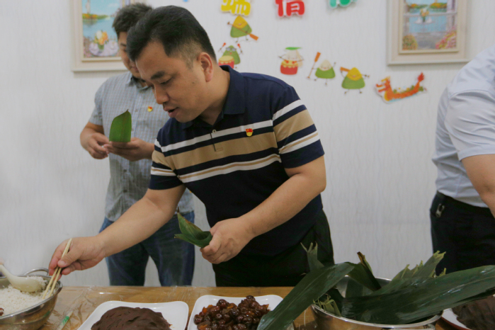 “感谢母校的四年培养,老师的悉心教导,圆了我考研的梦想;我一直想学包粽子,享受一下DIY的乐趣,毕业前学校帮我实现了大学生活最后的一个愿望。”精诚书院2021届药学毕业生高树柳说道。 为进一步了解中国的传统节日,感受传统节日中蕴藏的无穷魅力,更好地学习党的百年历程,6月11日上午,机关党总支与精诚书院党总支“牵手”,开展“浓情端午品粽香,饮水思源忆党史”主题活动,我校党委副书记张钢、副院长薛宏出席,相关部门负责人、精诚书院贫困学生代表参加。 一大早,精诚书院功能区“三味厨屋”便热闹起来。糯米、蜜枣、粽叶、豆沙等摆上了桌,校领导、相关部门负责人与学生代表齐聚一堂。剪绳子、折粽叶、包糯米、放蜜枣……大家齐上阵,不一会儿,一个个口味各异的粽子堆成了“小山”。包粽子过程中,张钢、薛宏与学生们亲切交谈,分别了解了学生的学习、生活情况,并向学生们讲解了端午节知识,并结合近期党史学习,给学生上了一堂生动形象的红色党课。 拎着刚煮好的粽子和提前准备好的香囊,薛宏带领相关部门负责人,走进了贫困学生宿舍。学生们高兴地接过粽子和香囊,感谢学校的贴心服务,让他们度过了一个意义非凡的端午节。薛宏了解了学生学习和生活中是否有困难、宿舍是否需要维修以及空调制冷等情况,面对急需解决的问题,工作人员并一一记录……从贫困学生宿舍出来后,薛宏带领大家又走进毕业生学生宿舍中,为他们送上节日的温暖祝福,并祝福他们在今后的工作和生活中一切顺利,有空常回母校看看。 2020级医学影像技术王婧妍说,“通过此次活动,我更深入地了解了端午来历、有关故事、习俗等,感受到端午节的文化内涵;进一步了解了历史,感受到伟人的爱国情怀,激发自己的爱国热情。” 据悉,此次活动是机关党总支以党史学习教育为契机,坚持学用结合,着重解决师生困难点问题,力促学习教育落实落地、取得实效。接下来,机关党总支将持续深入开展党史学习教育,守初心、担使命,悟思想,办实事,开新局,以优异成绩迎接建党100周年。